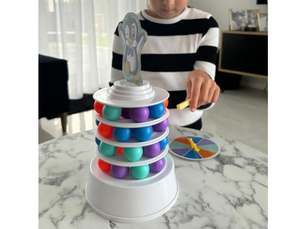 Hra zahŕňa stavbu veže - na každej úrovni musíte umiestniť 9 rôznych farebných guľičiek, na guľičky umiestniť obruč a úplne hore umiestniť kopulu veže s obrázkou tučniaka. Potom odoberáme guľičky z rôznych úrovní veže pomocou tyčiniek, aby sme nezničili celú konštrukciu. Každý hráč otočením rulety vyberie farbu guľičky, ktorú musí odstrániť. Po zasiahnutí guľičky spadnú do veže a vyletí otvorom v základni. Úlohou hráčov je odstrániť ich tak, aby veža nespadla a tučniak zostal hore. Hra sa stáva více a více vzrušujúca a náročná, pretože každá guľička je odstránená, čo znížuje stabilitu veže.