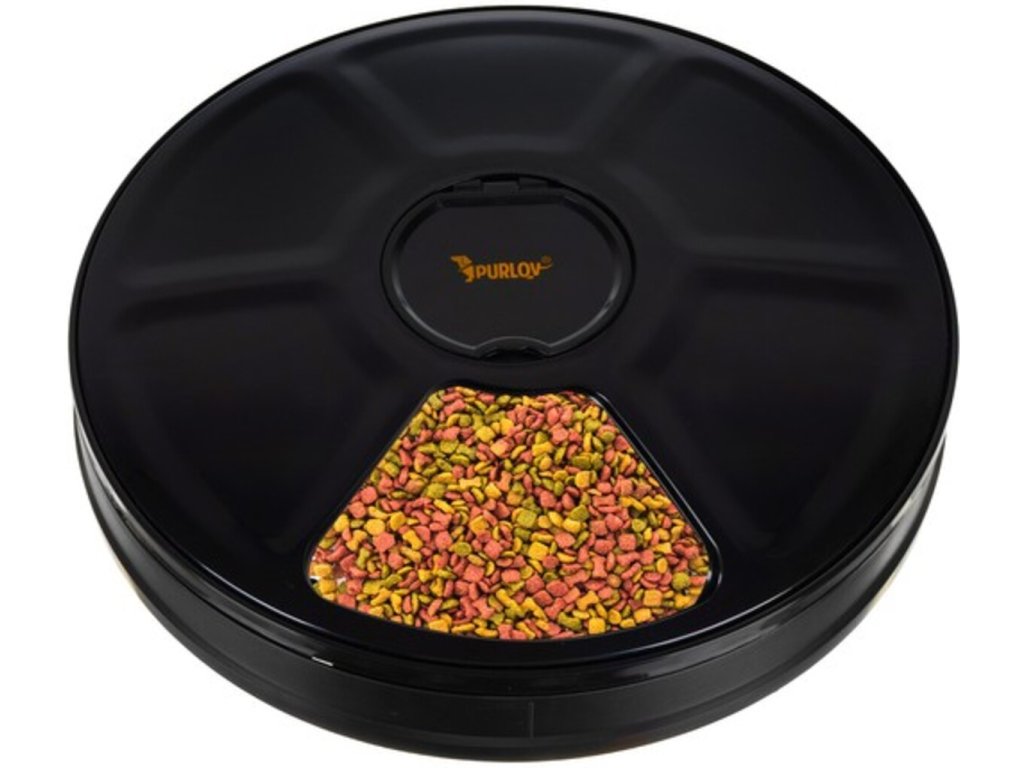 Automatický dávkovač krmiva je skvelý pomocník na kŕmenie vášho maznáčika. Už sa nemusíte starať o pravidelnosť kŕmenia. Má 6 komôr s objemom 150 ml každá. Päť je ich zakrytých a jeden je otvorený. Systém časovaného otvárania otvára jednu potravinovú komoru v určitom čase pri otočení veka. Časovať a LED display je zariadenie, ktoré sa stará o čas kŕmenia. Automatický dávkovač potravín sa bude sám podávať v časoch, ktoré si zvolíte. Ďalšou výhodou je LED displej. Všetky časti dávkovača sú odnímateľné na jednoduché čistenie. Niektoré časti je možné umývať v umývačke riadu, napríklad veko a tácka na potraviny. Dávkovač pripomenie vášmu miláčikovi v nastavený čas pomocou „vtáčieho cvrlikání“, že jedlo bolo naservírované. Miska je na batérie, takže nebude problém so zamotaným káblom.