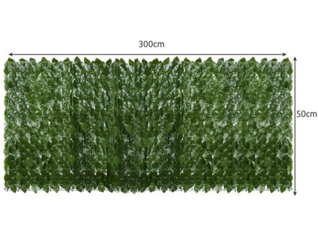 Užite si dokonalú súkromnú oázu s našou balkónovou zástennou vo forme umelého živého plota s tmavozelenými listami o rozmeroch 300 × 50 cm. Predstavte si ten pokoj na vašej terase či balkóne, keď vás oddeľuje od zvedavých pohľadov okolia, a pritom nemusíte vynakladať žiadne úsilie na údržbu. Vďaka odolnosti proti poveternostným vplyvom vám naša zástena poskytne dlhodobé riešenie bez potreby polievania či hnojenia. Tento živý plot je zložený zo šiestich panelov a ľahko sa prispôsobí vašim potrebám - od záhrad cez balkóny, hranice pozemkov až po vnútorné priestory. Jeho realistický vzhľad očarí každého návštevníka a dodá vášmu miestu jedinečnú estetiku. Vyberte si umelý plot, ktorý nielen skrášli váš priestor, ale tiež chráni vaše súkromie. Objednajte si teraz a premeňte svoj domov na príjemné a intímne útočisko!