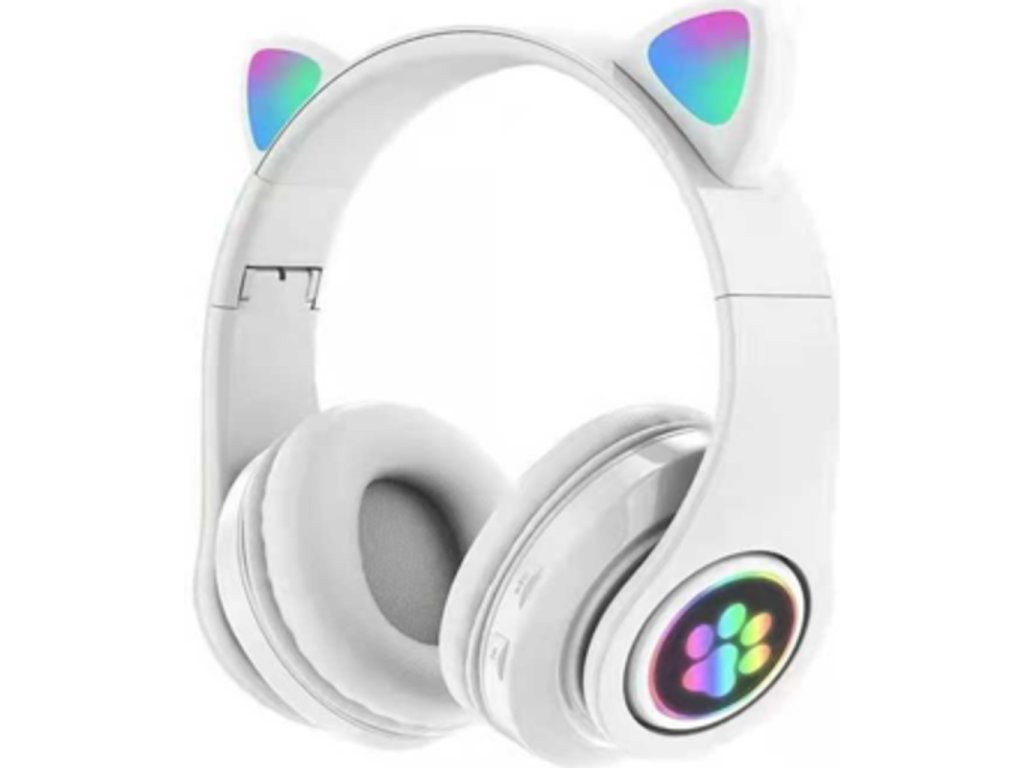 Moderné, pohodlné, pohodlné chrániče sluchu a bezdrôtová bluetooth komunikácia vám umožnia počúvať hudbu bez káblov. Sú perfektné pre spoluprácu s mobilnými zariadeniami a telefónmi, ale sú tiež ideálnym riešením pre užívateľov notebookov, počítačov a herných konzol pre počúvanie hudby a sledovanie filmov. Slúchadlá sa nabíjajú cez microUSB kábel. HANDS-FREE SADA S VSTAVANÝM MIKROFÓNOM. Toto pripojenie umožňuje volať priamo zo slúchadiel po pripojení k telefónu cez Bluetooth modul. Slúchadlá si môžete vziať kamkoľvek so sebou a používať ich, ako chcete. Pripojte sa k mobilnému zariadeniu bezdrôtovo cez Bluetooth a prehrávajte svoju obľúbenú hudbu alebo počúvajte rádio. Je to perfektné vybavenie na každodenné použitie, doma, v práci alebo pri cvičení. Náušníky sú potiahnuté mäkkou eko kožou, vďaka ktorej môžete počúvať hudbu po dlhú dobu bez toho, aby ste unavili uši. Vzhľad slúchadiel pripomína ušká mačiatka, ktoré svietia bielou alebo RGB farbou, vďaka čomu vždy zapadnú do detského stylingu. Boky náušníkov majú odtlačky mačacích labiek, ktoré sú tiež osvetlené. Teraz bude vaše dieťa vždy vidieť na chodníku, dokonca aj po zotmení!
