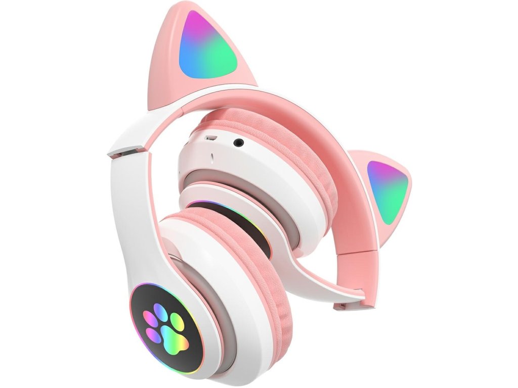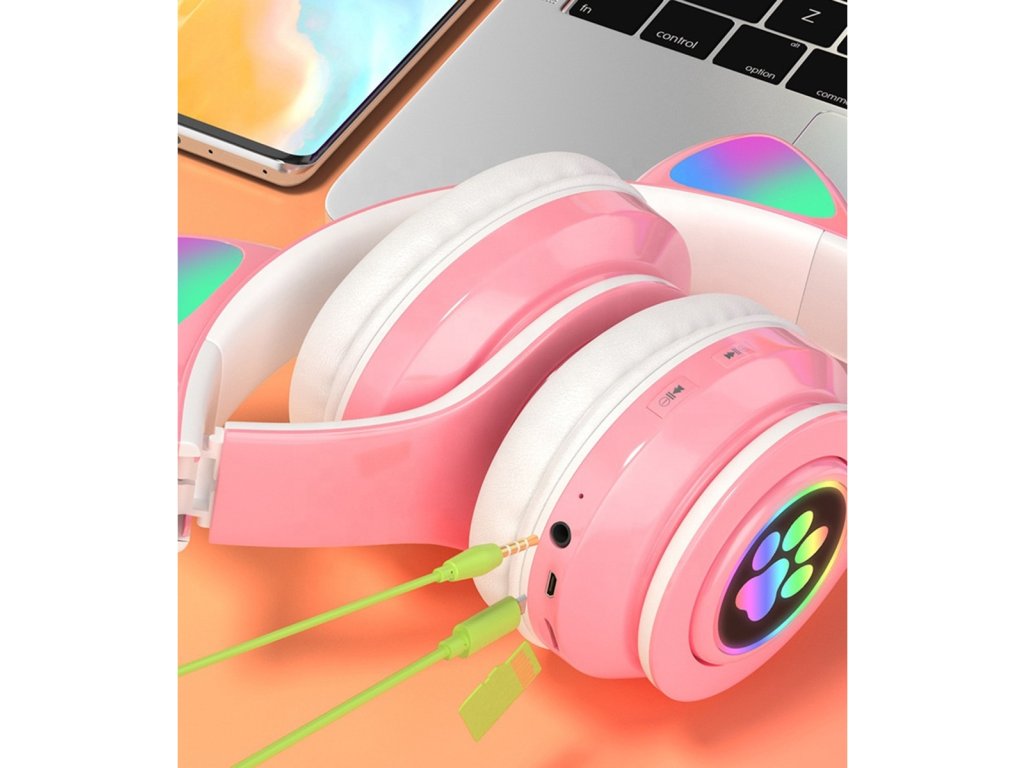 Moderné, pohodlné a praktické náušníky a bezdrôtová komunikácia bluetooth vám umožnia počúvať hudbu bez káblov. Sú ideálne na prácu s mobilnými zariadeniami a telefónmi, ale sú ideálne aj pre používateľov notebookov, počítačov a herných konzol na počúvanie hudby a sledovanie filmov. Slúchadlá sa nabíjajú pomocou kábla microUSB. SÚPRAVA HANDS-FREE SO ZABUDOVANÝM MIKROFÓNOM. Toto pripojenie umožňuje uskutočňovať hovory priamo zo slúchadiel po pripojení k telefónu prostredníctvom modulu Bluetooth. Slúchadlá si môžete vziať kamkoľvek so sebou a používať ich podľa svojich predstáv. Pripojte sa k svojmu mobilnému zariadeniu bezdrôtovo prostredníctvom rozhrania Bluetooth a prehrávajte svoju obľúbenú hudbu alebo počúvajte rádio. Je to ideálne zariadenie na každodenné používanie, doma, v práci alebo pri cvičení. Náušníky sú potiahnuté mäkkou ekokožou, takže môžete počúvať hudbu dlhú dobu bez toho, aby ste si unavili uši. Vzhľad slúchadiel pripomína mačacie uši, ktoré svietia bielou alebo RGB farbou, vďaka čomu sa vždy hodia do detského štýlu. Po stranách náušníkov sú odtlačky mačacích labiek, ktoré sú tiež podsvietené. Teraz bude vaše dieťa na chodníku vždy vidieť, a to aj po zotmení!