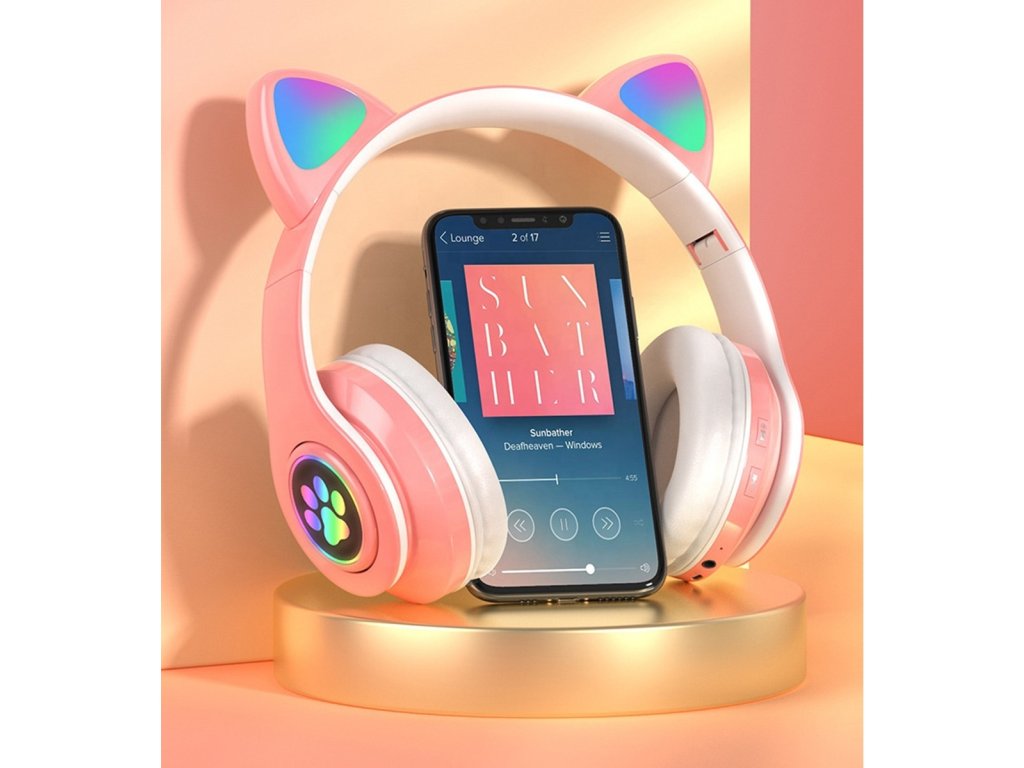 Bezdrôtové slúchadlá s mačacími ušami - ružové