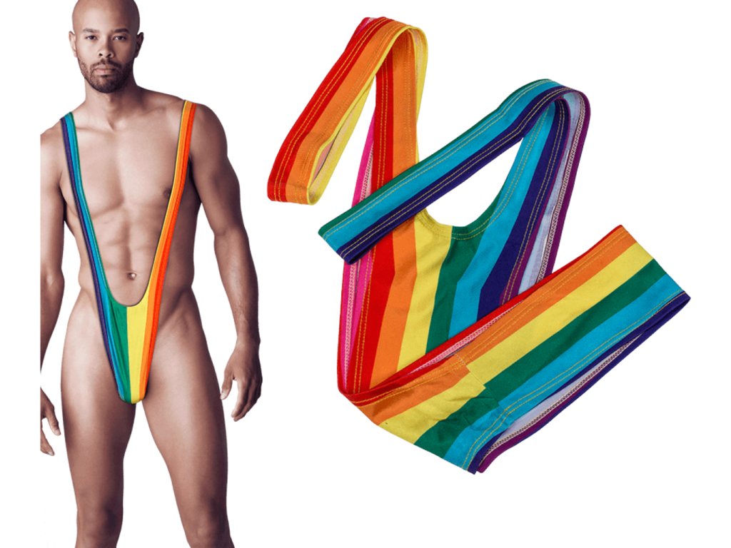 Buďte štýloví aj na pláži alebo pri bazéne ! Tieto mankini rozhodne upútajú pozornosť a zdvihnú kútiky všetkých divákov smerom nahor. Legendárnych plaviek z filmu Borat je teraz dostupná na kúpu v dúhovej farbe. Buďte originálni a dajte najavo, že máte veľký zmysel pre humor . Skvelý darček pre mužov so zmyslom pre zveličenie. U týchto plaviek ide hlavne o humor. Aj keď sú z plavkoviny a môžu sa použiť ako plavky, ide skôr o kostým ako o plavky.