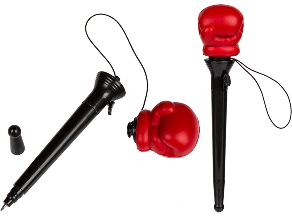 Máte radi kanadské žartíky a chcete sa zbaviť nudy v škole alebo v práci ? Urobte si srandu zo svojho spolužiaka alebo kolegu a dajte mu pri písaní poriadnu bombu touto boxovacou prepiskou . Humorná pera má na konci pripevnenú malú boxovaciu rukavicu . Stačí stlačiť jedno tlačidlo, rukavice vyletí a dá ranu nezbednému kamarátovi vedľa Vás. Boxovacie perá ako od Rockyho je originálny darček do školy alebo do kancelárie .