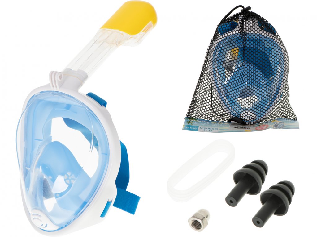 Zažite nezabudnuteľné dobrodružstvo . Šnorchlovanie alebo plávanie na hladine ako aktívna forma rekreácie je nezabudnuteľným zážitkom. Spočíva v plávaní na hladine vody v maske so šnorchlom. Na rozdiel od potápania človek, ktorý chce skúsiť šnorchlovanie, nemusí mať plavecké schopnosti. K tejto forme rekreácie stačia základné plavecké zručnosti , okuliare so šnorchlom a vášeň pre dobrodružstvo. Pôžitok zo šnorchlovania spočíva v možnosti nakuknúť do podmorského sveta pri plávaní na hladine vody . Je špeciálne navrhnutý pre športové a rekreačné využitie. Sada obsahuje celotvárovú masku, vďaka ktorej zaisťuje prirodzené dýchanie nosom alebo ústami. Systém cirkulácie vzduchu zabraňuje zahmlievaniu masky. Maska poskytuje panoramatické zorné pole a elastický nastaviteľný pásik ju prispôsobí tvári. Trubica so systémom „dry-to“ obmedzuje nalievanie vody do potrubia zhora. Táto sada je skvelou voľbou na dovolenku a rodinné výlety k vode .