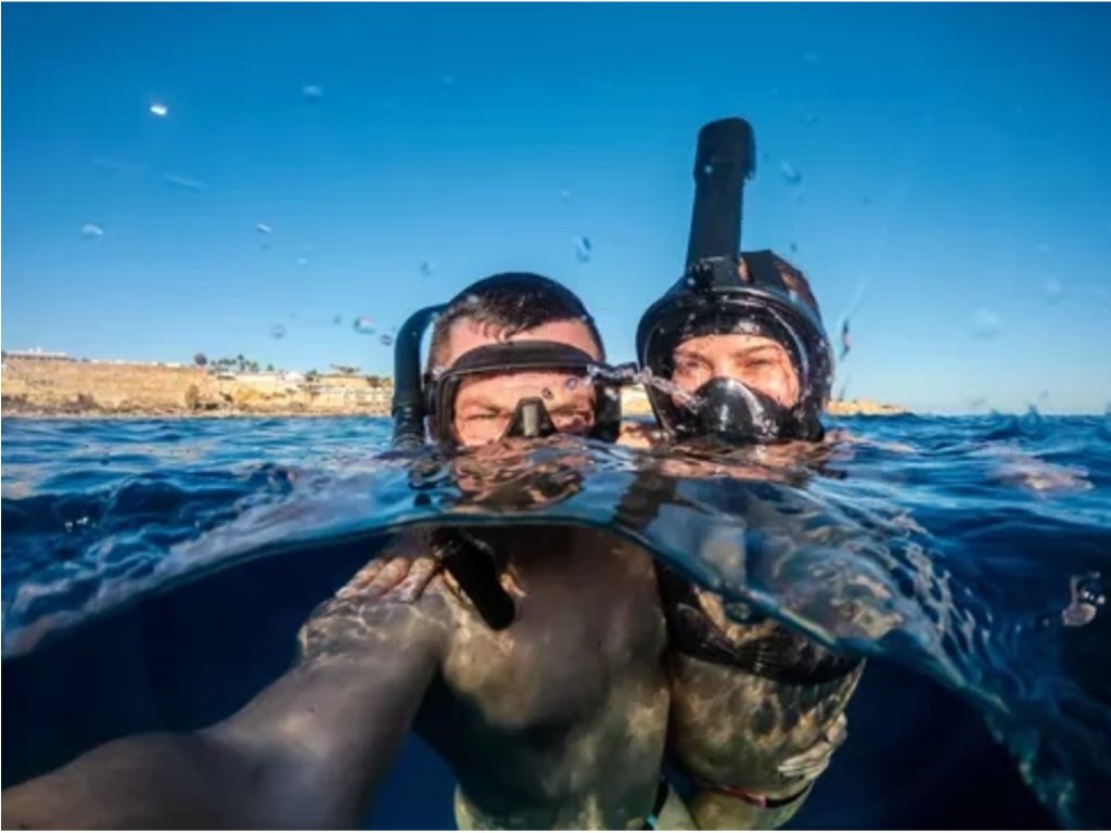 Zažite nezabudnuteľné dobrodružstvo . Šnorchlovanie alebo plávanie na hladine ako aktívna forma rekreácie je nezabudnuteľným zážitkom. Spočíva v plávaní na hladine vody v maske so šnorchlom. Na rozdiel od potápania človek, ktorý chce skúsiť šnorchlovanie, nemusí mať plavecké schopnosti. K tejto forme rekreácie stačia základné plavecké zručnosti , okuliare so šnorchlom a vášeň pre dobrodružstvo. Pôžitok zo šnorchlovania spočíva v možnosti nakuknúť do podmorského sveta pri plávaní na hladine vody . Je špeciálne navrhnutý pre športové a rekreačné využitie. Sada obsahuje celotvárovú masku, vďaka ktorej zaisťuje prirodzené dýchanie nosom alebo ústami. Systém cirkulácie vzduchu zabraňuje zahmlievaniu masky. Maska poskytuje panoramatické zorné pole a elastický nastaviteľný pásik ju prispôsobí tvári. Trubica so systémom „dry-to“ obmedzuje nalievanie vody do potrubia zhora. Táto sada je skvelou voľbou na dovolenku a rodinné výlety k vode .