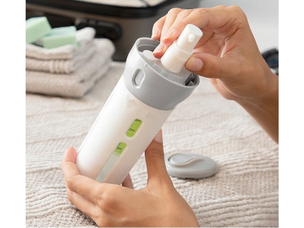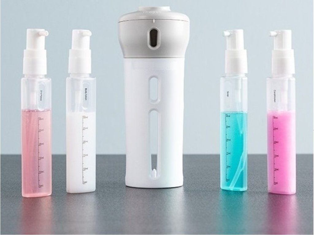Cestovný dávkovač tekutín 4 v 1