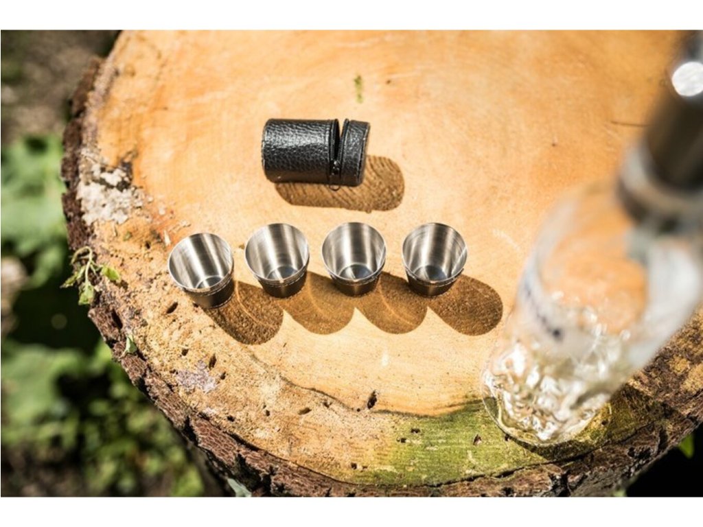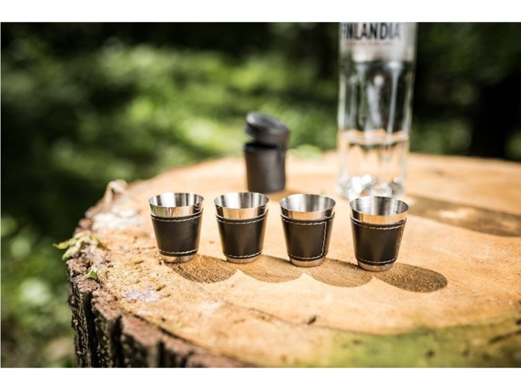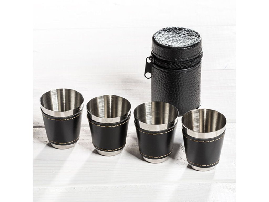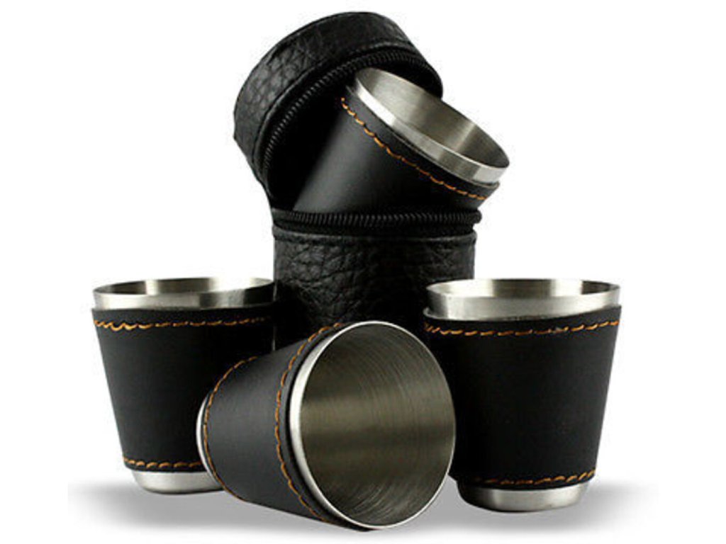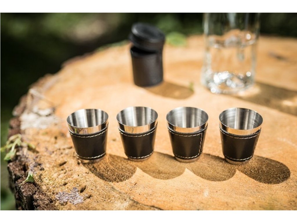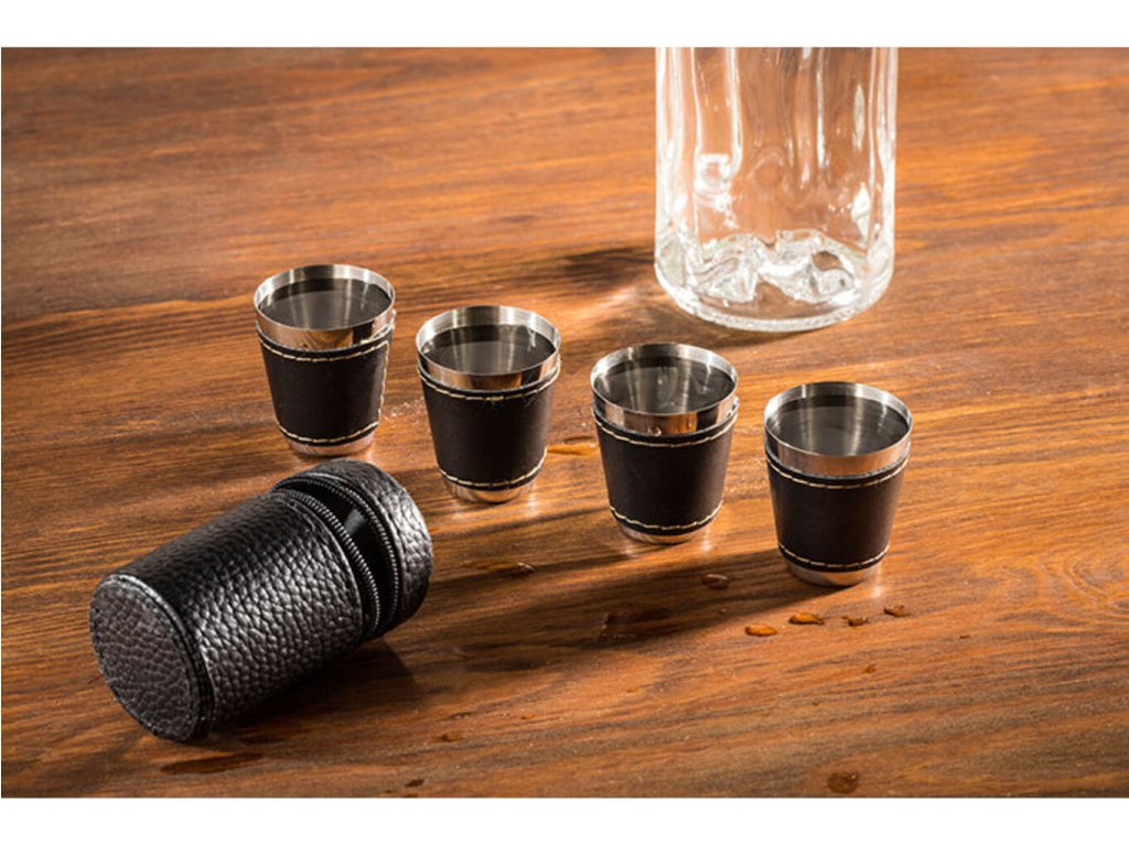 Možnosť dopriať si panáka alkoholu by ste mali mať stále a to aj na cestách. Ak často jazdievate na čundry, festivaly alebo tábory , potom iste uvítate túto sadu cestovných kožených panákov , ktoré si môžete brať všade sebou. Nerezové panáky sú v koženom púzdre , ktoré sa ľahko zmestí do batohu, kabelky či vrecka. Puzdro obsahuje 4 panáky . S touto sadou si môžete dopriať svoj obľúbený panák alkoholu kdekoľvek a nemusíte so sebou ťahať sklenené panáky , ktoré by sa rozbili. Cestovné kožené panáky sú originálny darček na cestovanie .