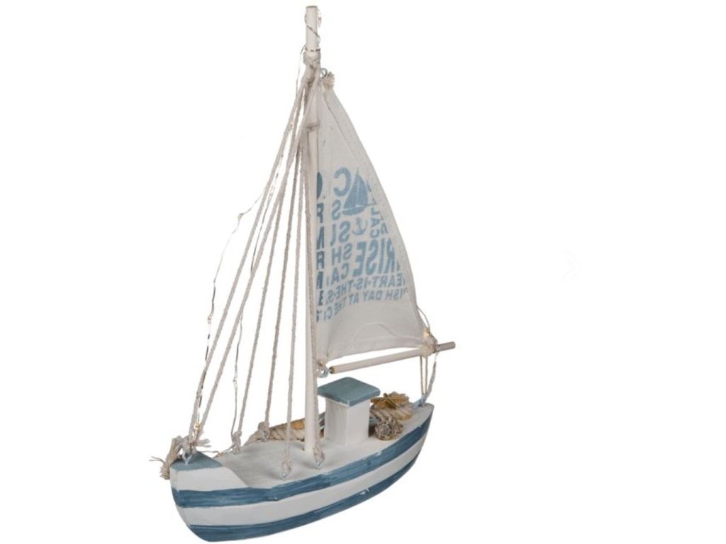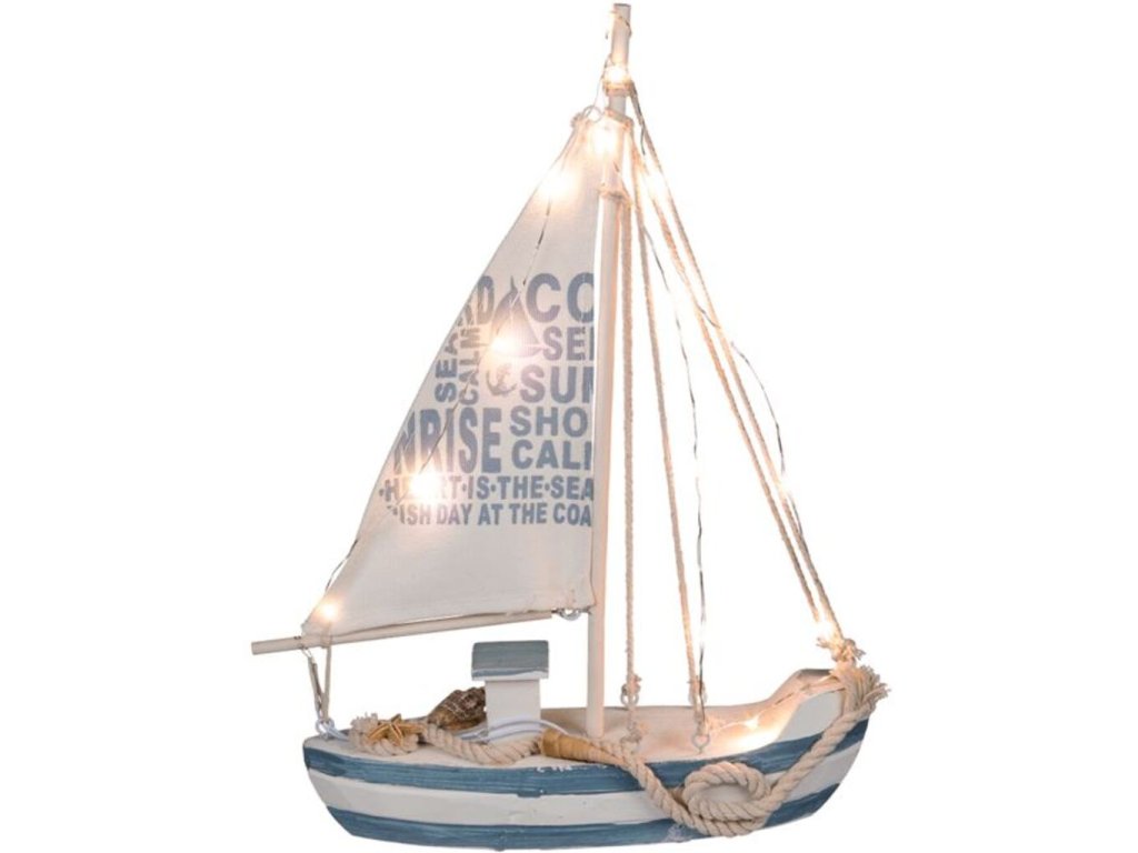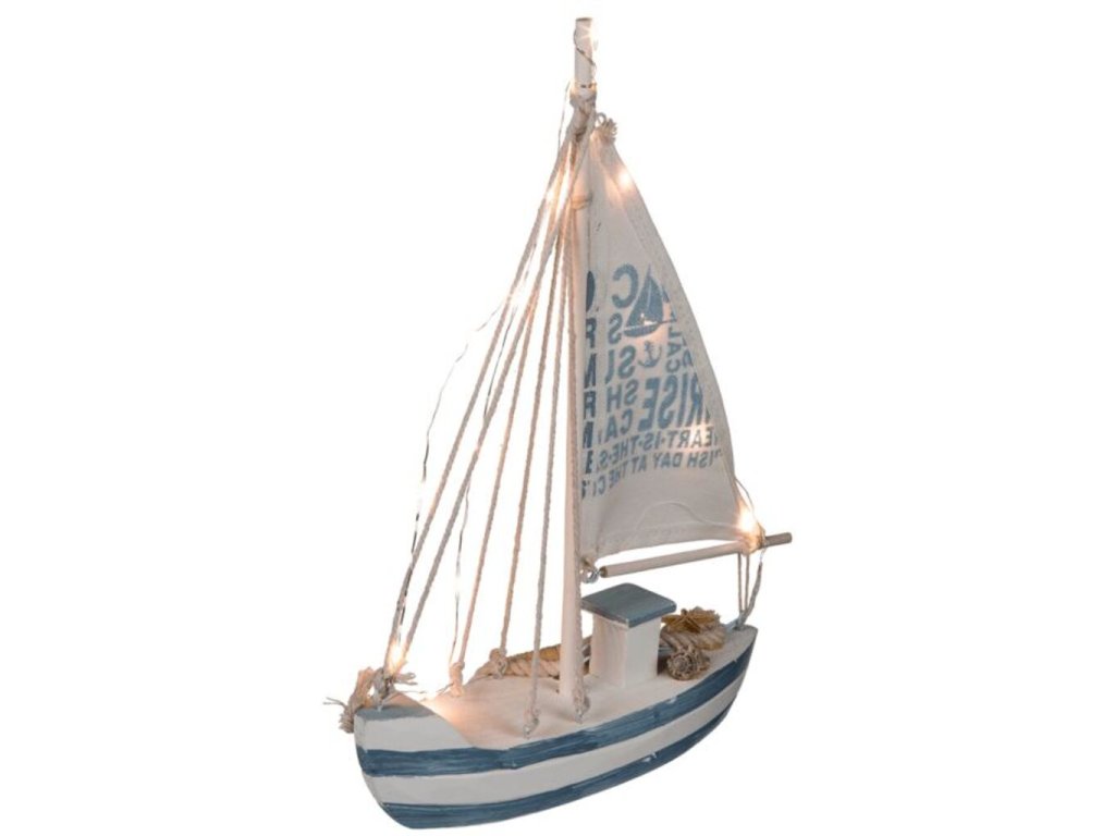 Pre milovníkov morského štýlu je tu fantastická dekorácia, ktorú je možné pridať do zbierky. Táto drevená plachetnica s 13 teplými bielymi LED diódami sa rozsvieti a vytvára idylickú námornú atmosféru. Ideálna ako ozdoba, ale aj ako ozdoba na stôl, ktorá dodá vášmu domovu štýl. Funguje na 2 AAA mini batérie - 1,5 V 2 protišmykové nôžky Rozmer: V 29,5 x Š 20 cm x H 5 cm Obsahuje: 1x Drevený čln
