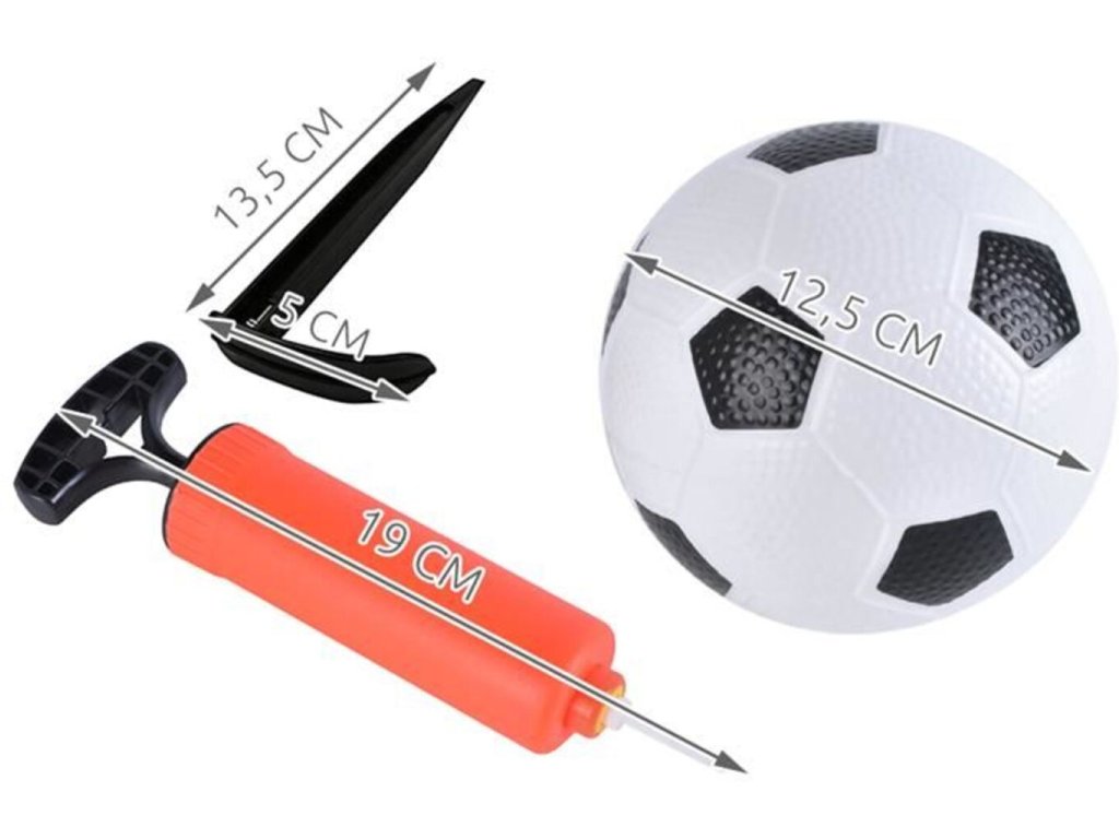 - Materiál: PVC + prvky: PET, sieťovina: nylon + PVC lopta + PP kotva + PP ručná pumpa + železná ihla