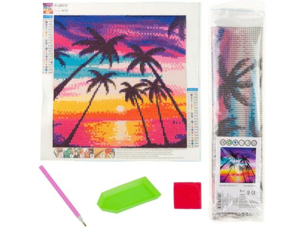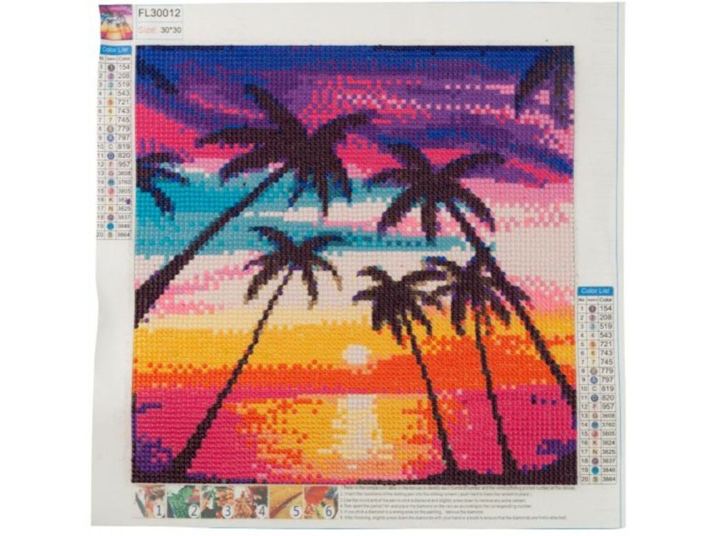 Diamantové maľovanie - 3D Palmy a Západ slnka