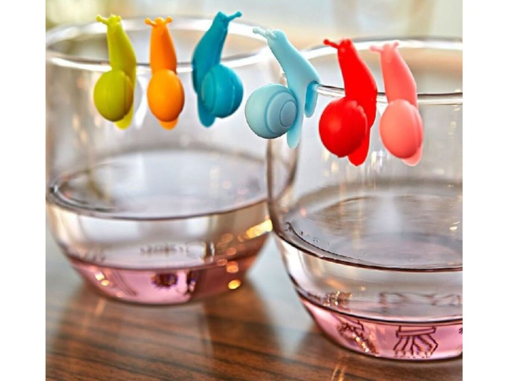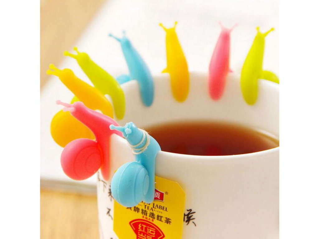 - Sada farebných slimákov pre čajové vrecká alebo na značenie nápojov