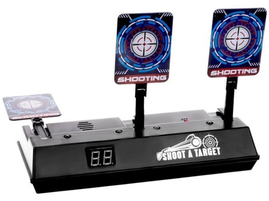 Nepostrádateľný doplnok pre malého fanúšika raketometov NERF. Elektronický štít je skvelá zábava pre deti aj dospelých. Cieľom hry je zasiahnuť tri terče. Hra skvele rozvíja obratnosť a koordináciu ruka-oko a učia pravidlá súťaže a fair play . S Elektronickým terčom Nerf sa určite nikto nudiť nebude. Nákup Elektronického terča Nerf je uspokojením skvelé zábavy a príjemného času s rodinou a priateľmi - bez toho aby ste museli opúšťať domov a platiť za zábavu.