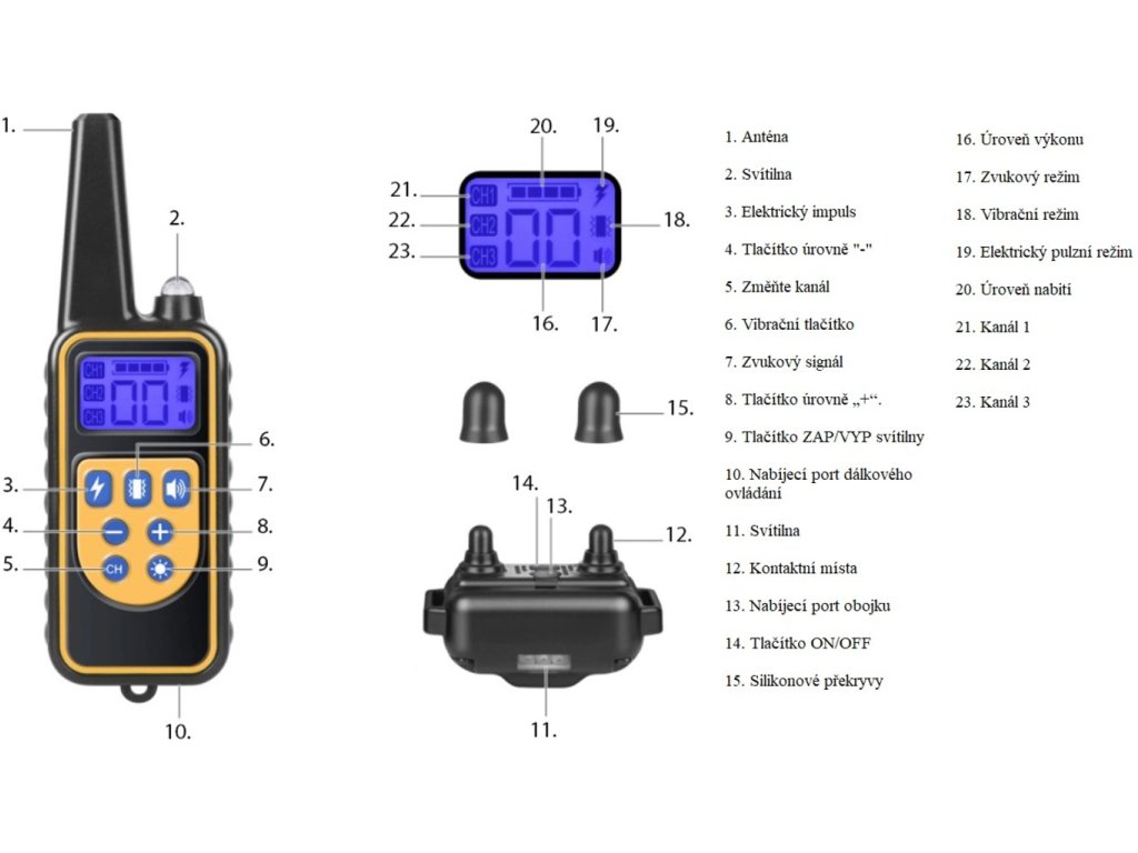 - Nastaviteľný obojok (maximálna dĺžka obojku 70 cm)