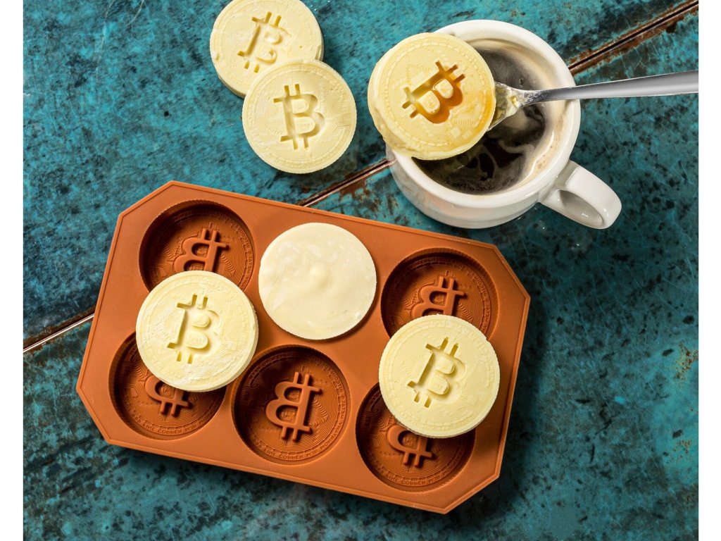 Forma na ľad a čokoládu na výrobu ľadových alebo čokoládových bitcoínov. S našou ľadovou alebo čokoládovou formou sa môžete cítiť ako skutočný krypto investor. Ľadové bitcoiny vám umožnia zmraziť váš obľúbený nápoj alebo alkohol, pretože kryptojazda zmrazí investorom krv v žilách. Ich väčšie množstvo vo vašom pohári vám umožní rýchlejšie dosiahnuť teplotu ATL nápoja. Na druhú stranu čokoládové kúsky sú sladkosťou a medom na srdci investorov, podobne keď kurz letí do vesmíru a poráža ďalšie ATH.