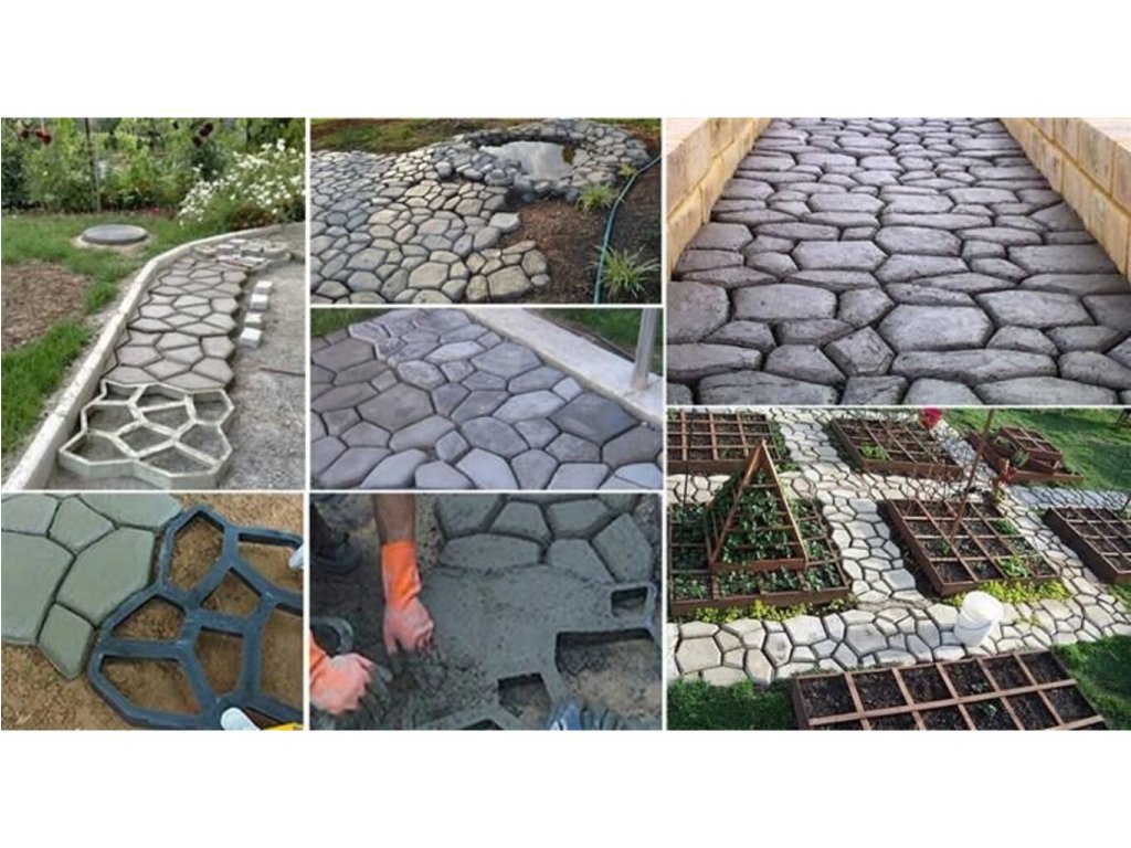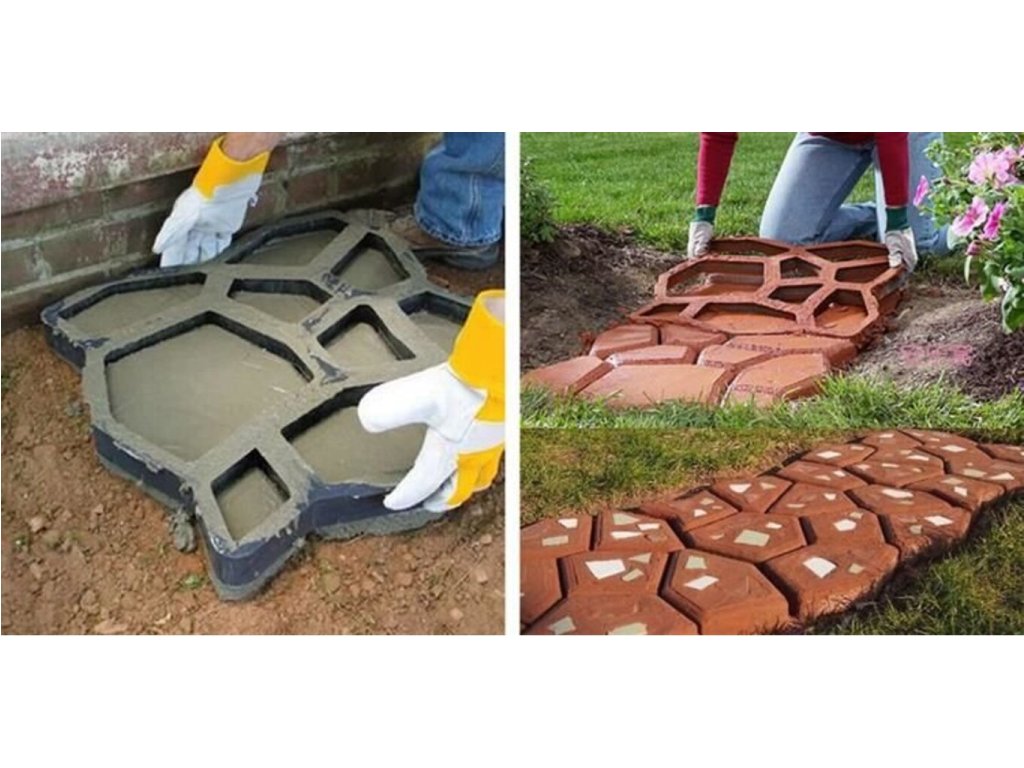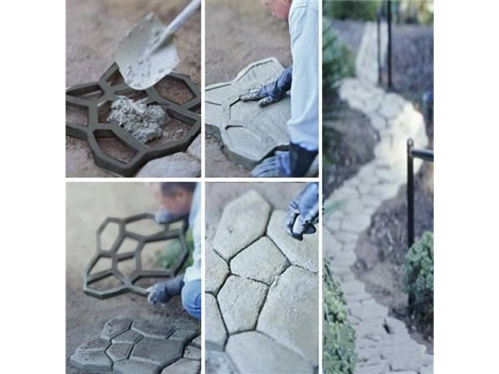 Betónová forma na vytváranie záhradných ciest, detských ihrísk atď. Formu je možné použiť mnohokrát, takže ušetríte veľa peňazí - nemusíte najímať firmu, aby ste naliali cestu, alebo kupovali hotové drahé kocky. Forma je dokonale kombinovateľná. Ideálne na cesty, do záhrady, na parkovanie. Forma sa vopred naleje do polosuchej malty, potom sa rozotrie lyžicou cez formu, aby sa odstránil prebytok. Použitím rôznych farieb pigmentov môžete pri tónovaní betónu vytvoriť zaujímavý aranžmán. Vďaka spoločnej betónovej základni sa chodník nerozpadne, kocky sa nepohybujú a tráva v medzerách nebude rásť.