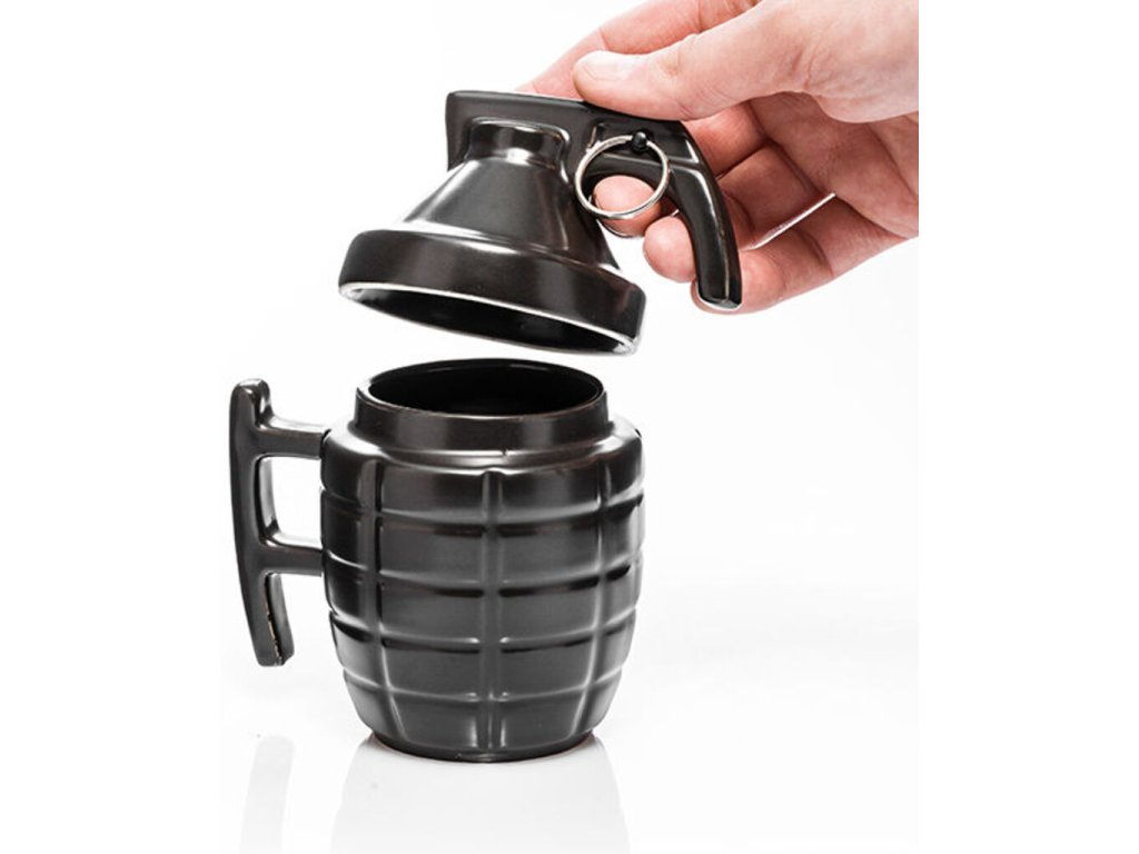 Tento jedinečný granátový hrnček s viečkom v čiernej farbe je unikátny darček pre poriadnych chlapov . Potešte svojho partnera , alebo otecka a venujte mu k narodeninám tento štýlový hrnček v tvare granátu . Len s týmto hrnčekom môžete pri každom popíjaní kávy či čaju cítiť tú príjemnú výbušnú chuť. Granátový hrnček s viečkom - čierny je krásny a originálny darček pre mužov .