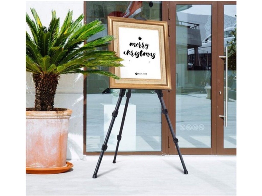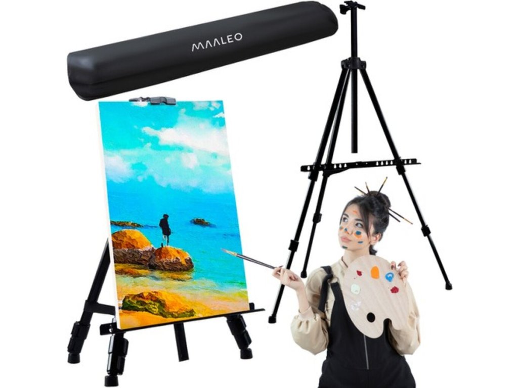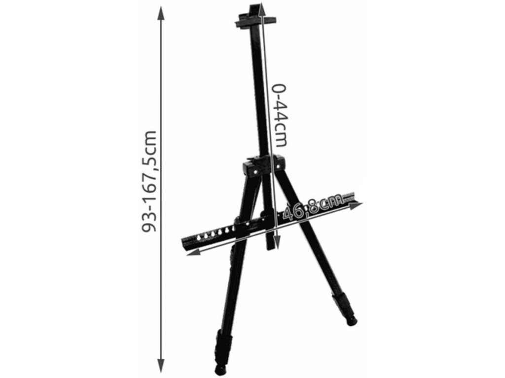 Vynikajúci multifunkčný stojan, ktorý môžu umelci používať na maľovanie v exteriéri ako stojan do terénu alebo v interiéri ako stojan na podlahu alebo stôl. Je to tiež ideálny stojan na maľovanie, kancelárske prezentácie, plagáty a tabule so suchým stieraním alebo ako držiak na nápisy v obchodoch a iné. Stojan má 3-segmentové nohy, ktoré umožňujú presné nastavenie výšky stojana. Nastaviteľná výška držiaka obrazu - jedným pohybom svorky ho možno prispôsobiť výške a hrúbke obrazu. Nohy sú zakončené samonivelačnými protišmykovými prvkami. Stojan je tak pri práci chránený proti pádu. Má aretáciu rozstupu nôh, takže ho možno umiestniť v sťažených podmienkach na malej ploche.