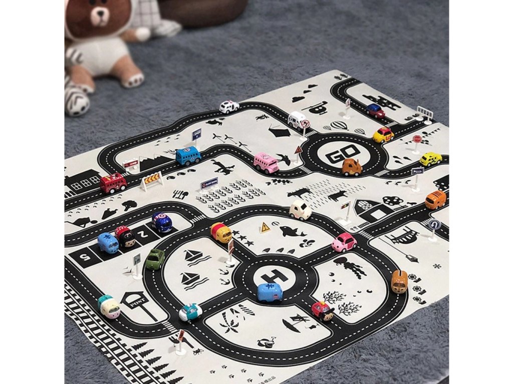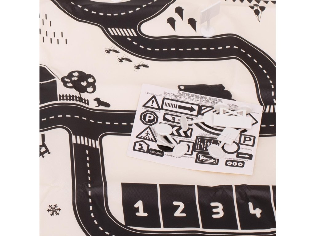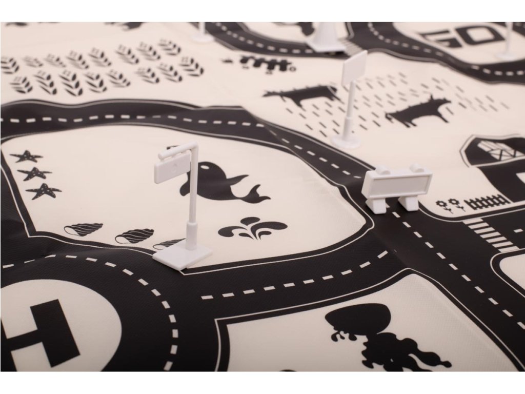 Snívate o vlastnom meste s pruhom ciest, kde budete riadiť svoje obľúbené autá? Podložka s mestským vzorom splní deťom ich sny. Vytvorte si svoje vlastné mesto! Veľká vodeodolná podložka pre deti s mestským designom. Rad ulíc a možnosť umiestnenia dopravných značiek podľa vlastného uváženia zaistí vášmu dieťaťu veľa nekonečnej zábavy. Vezmite svoje dieťa na vzrušujúcu cestu mestom, ktorého bude dizajnérom. Podložka spestrí hru a prebudí v dieťati kreativitu. Hra na podložke bude skvelým úvodom do poznávania pravidiel cestnej premávky. Vyrobené z plastu pripomínajúceho plátno. Súprava obsahuje rôzne dopravné značky, aby si dieťa mohlo vytvoriť svoje vlastné mesto. Pred hraním si môže nalepiť samolepky na zodpovedajúce značky. Podložka bude užitočná pri osvojovaní základných dopravných predpisov.