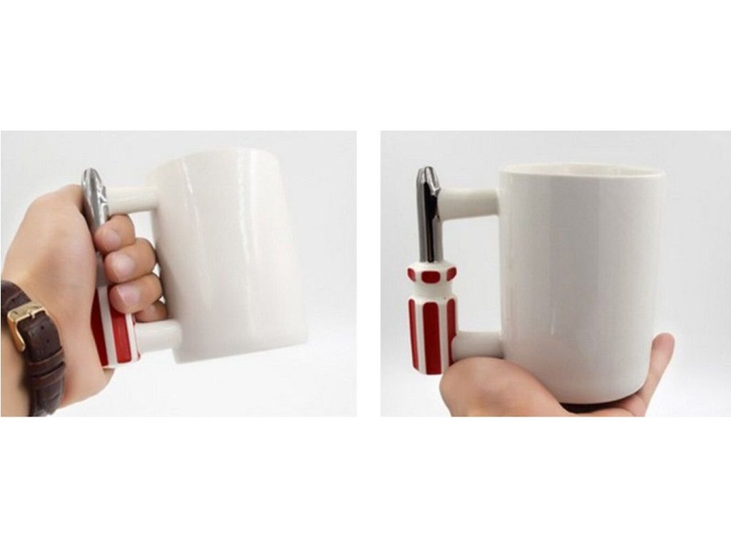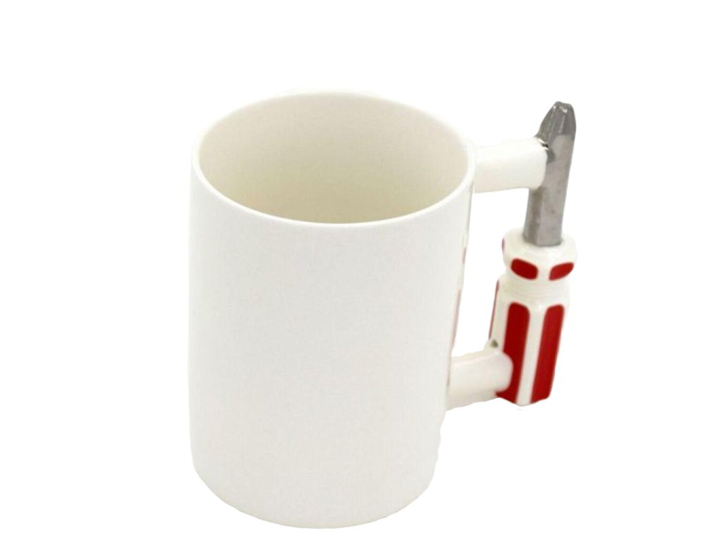- Porcelánový hrnček s rukoväťou skrutkovača