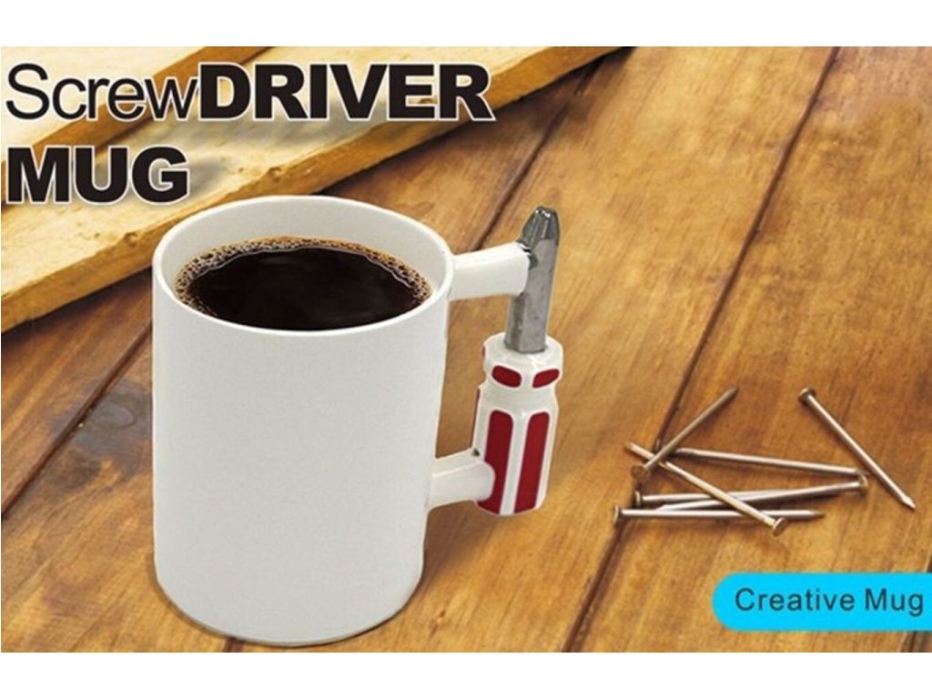 Máte v rodine opravára , alebo kutila ? Pre spríjemnenie jeho práce ponúkame štýlový hrnček skrutkovač , ktorý Vás inšpiruje a dodá energiu na prácu. Je Váš otecko domáci majster a dochádzajú mu nápady? Darujte mu k narodeninám tento krásny hrnček , aby ho inšpiroval. Hrnček má namiesto klasického ucha skrutkovač . Dizajn hrnčeka je naozaj netradičný a urobí radosť každému majstrovi . Hrnček skrutkovač je originálny darček pre všetky pracanty.
