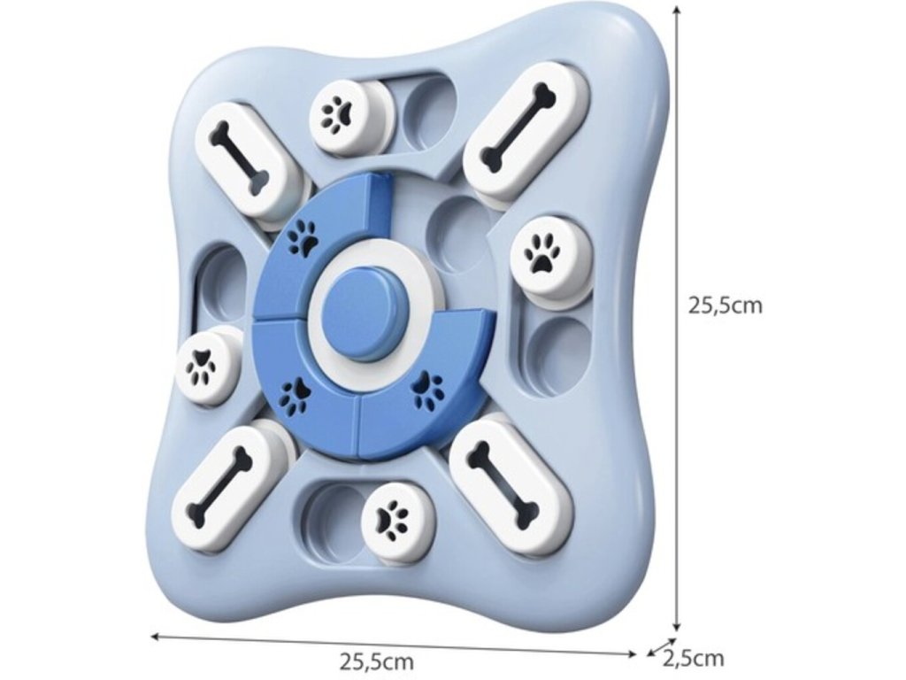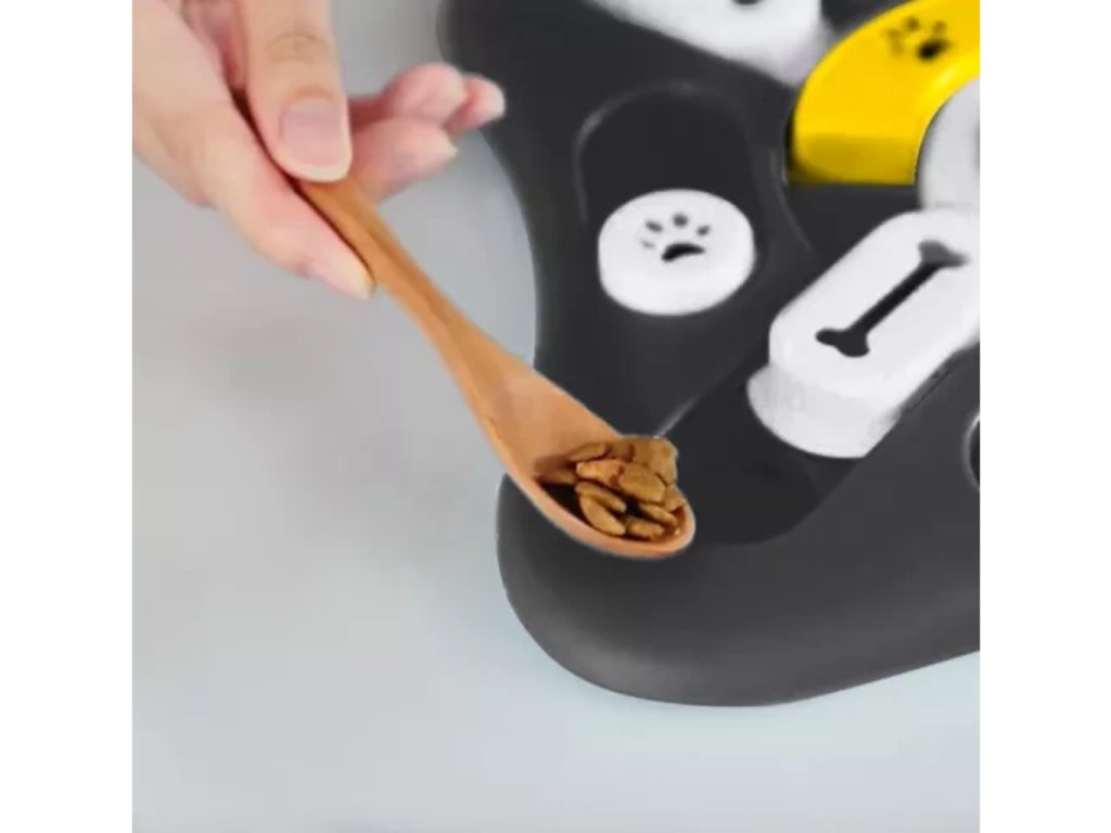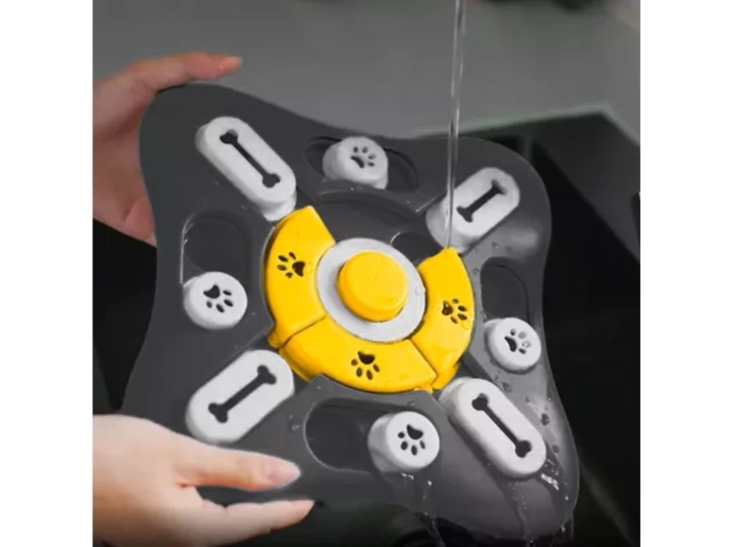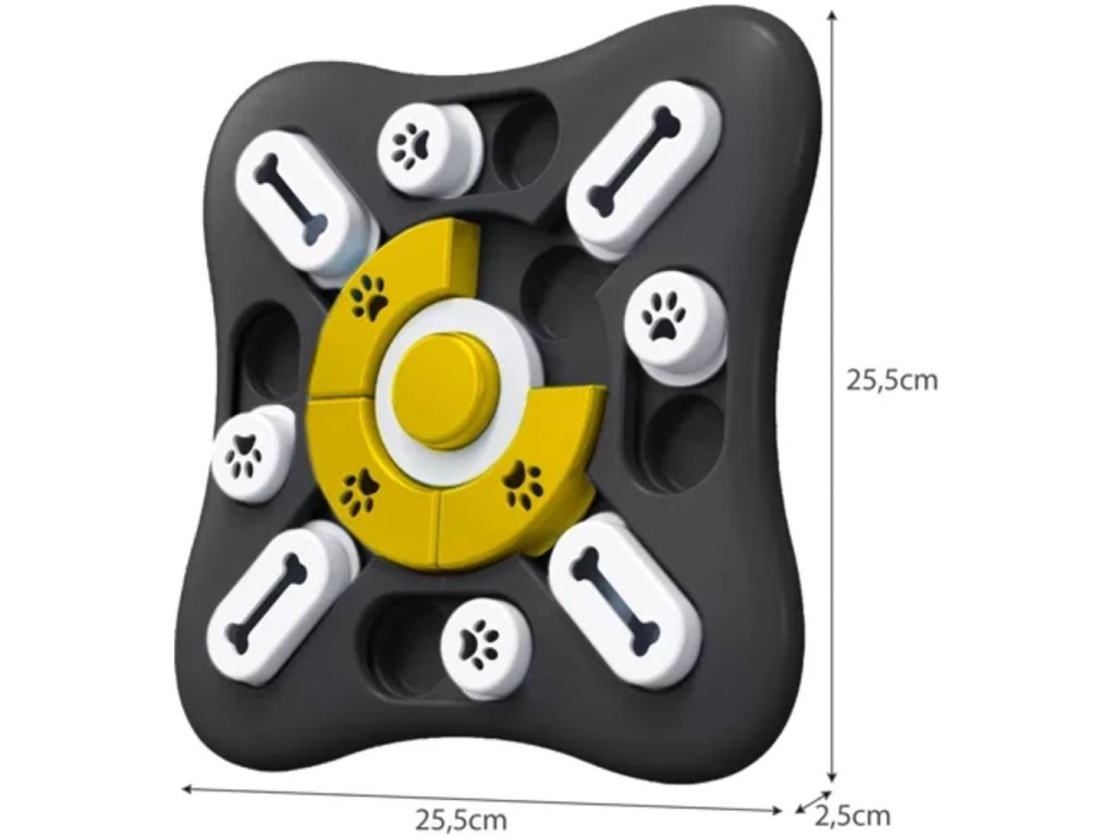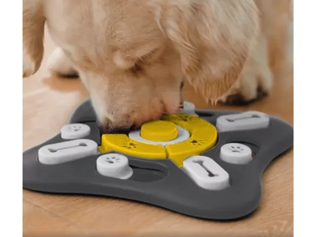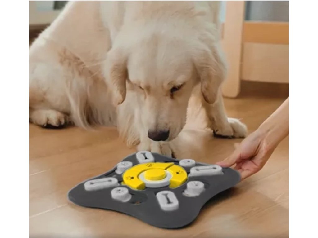 Interaktívna hračka pre psa je skvelým pomocníkom na zabavenie vášho štvornohého kamaráta. Vďaka tejto hre bude váš štvornohý priateľ rozvíjať svoje zmysly pre hľadačov a dobyvateľa! Okrem toho táto hádanka formuje proces zamerania a presnosti u zvieraťa, pomáha bojovať s nudou a tiež poskytuje pozitívne emócie . Ale najdôležitejšie je, že mu to prináša veľa radosti a bezstarostnej zábavy ! Je špeciálne navrhnutá tak, aby mal pes čas sa hrať. Veľké množstvo priehradok prinúti psa objaviť desiaty v každej priehradke. Prostredné puzzle sa otáča o 360 stupňov a tlačidlo vydáva pekný zvuk. Výrobok je vhodný do umývačky. Všetky prvky sú vyrobené tak, aby ich bolo možné dôkladne umyť aj v umývačke. Výrobok má zákutia, ktoré najlepšie umýva umývačka. Pokiaľ váš maznáčik prakticky hltá každé jedlo, môže byť veľmi nápomocná podložka na kŕmenie. Vďaka drážkam musí zviera trochu pracovať, než maškrty dostane von . Toto riešenie napomáha pomalej konzumácii potravy, a tým môže prispieť k správnemu tráveniu.