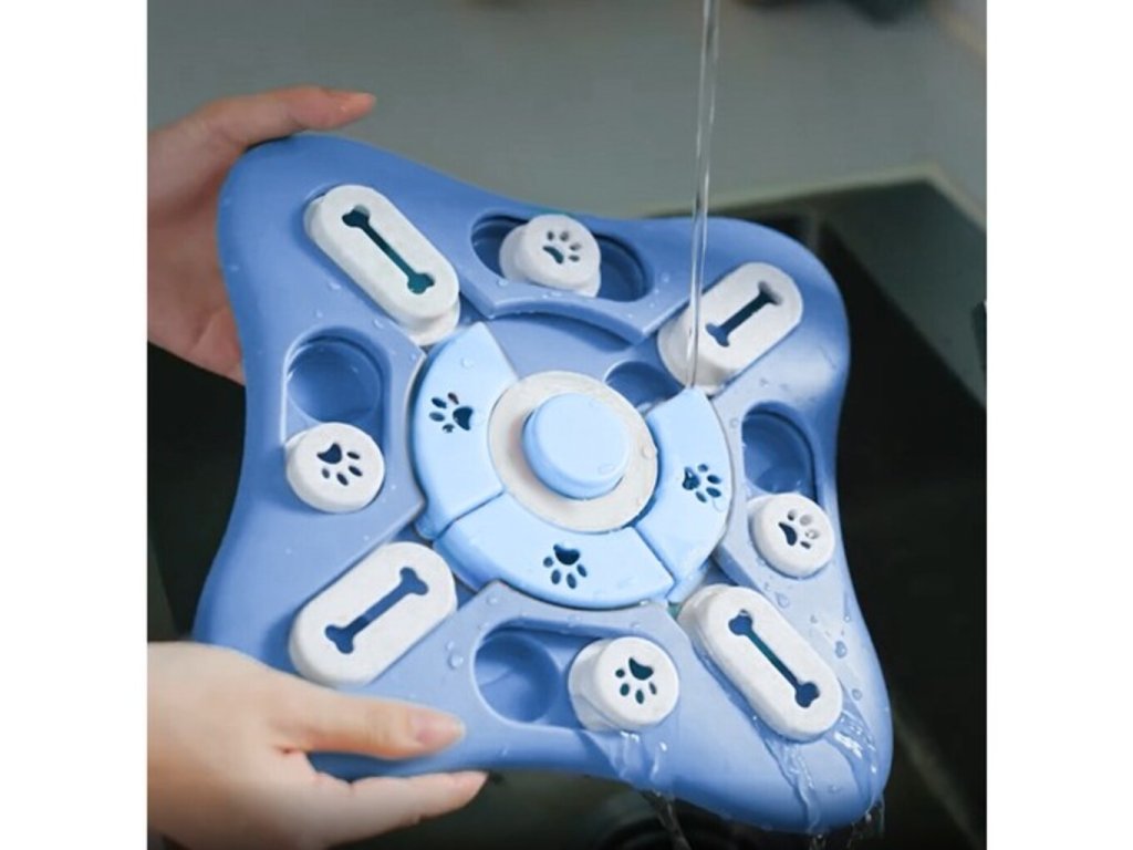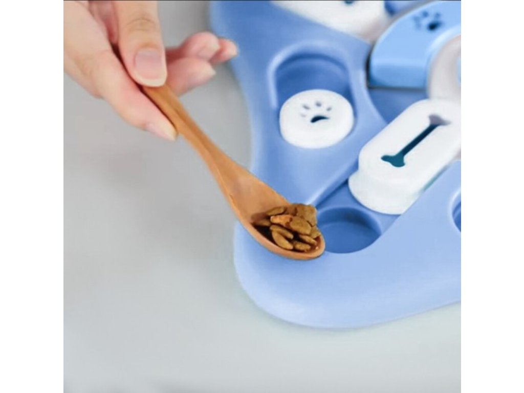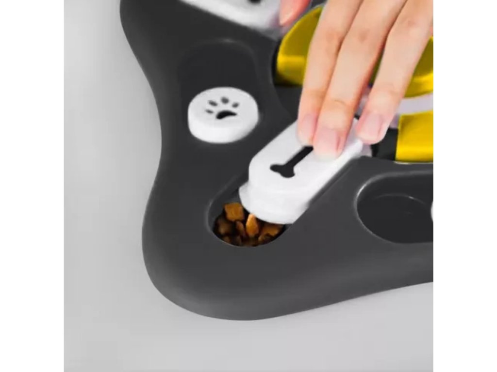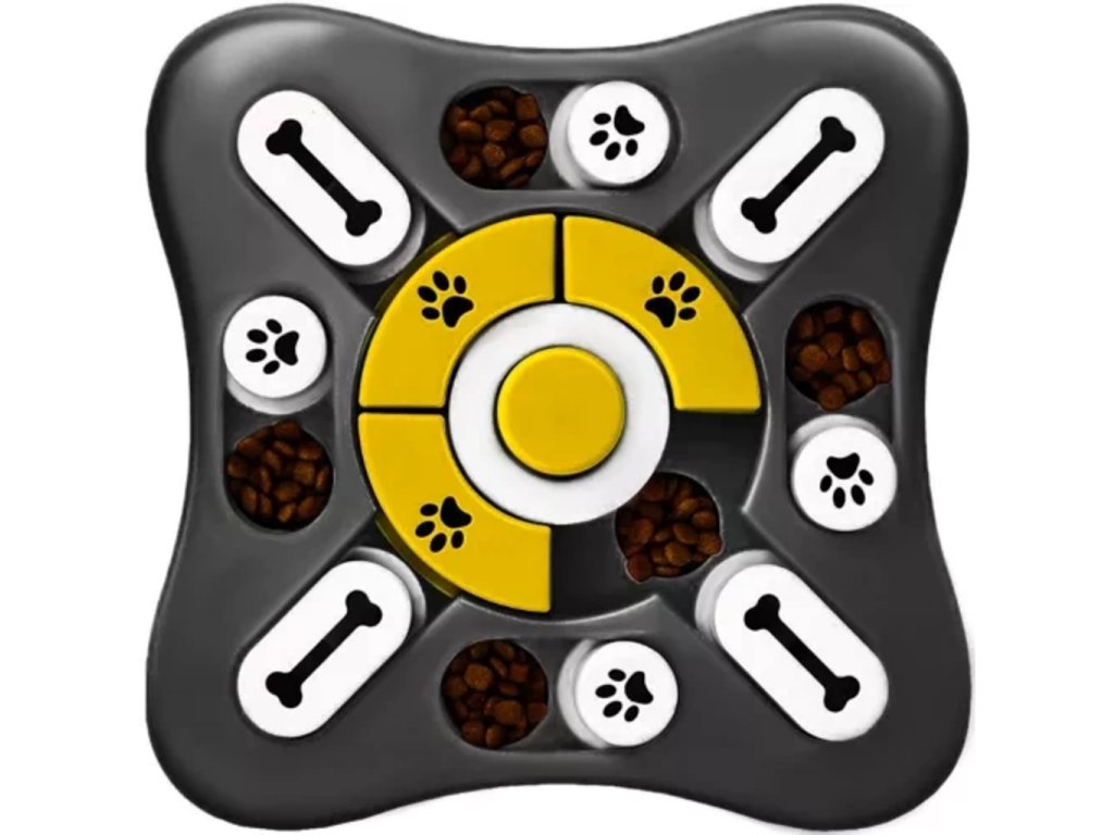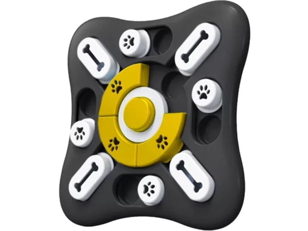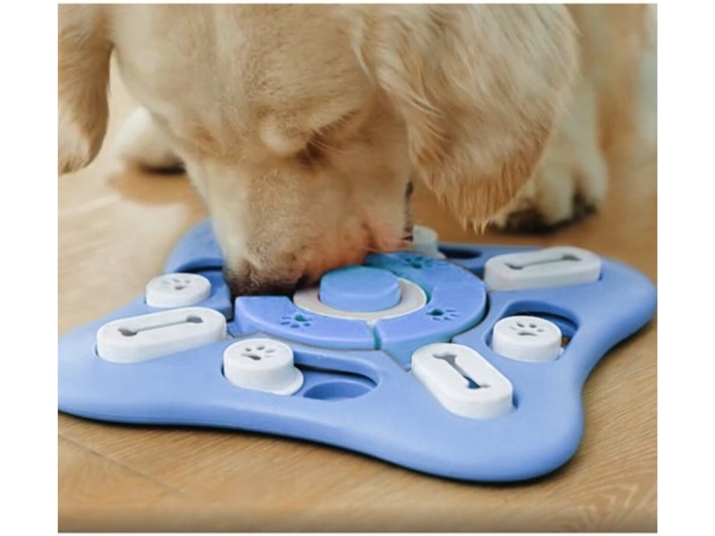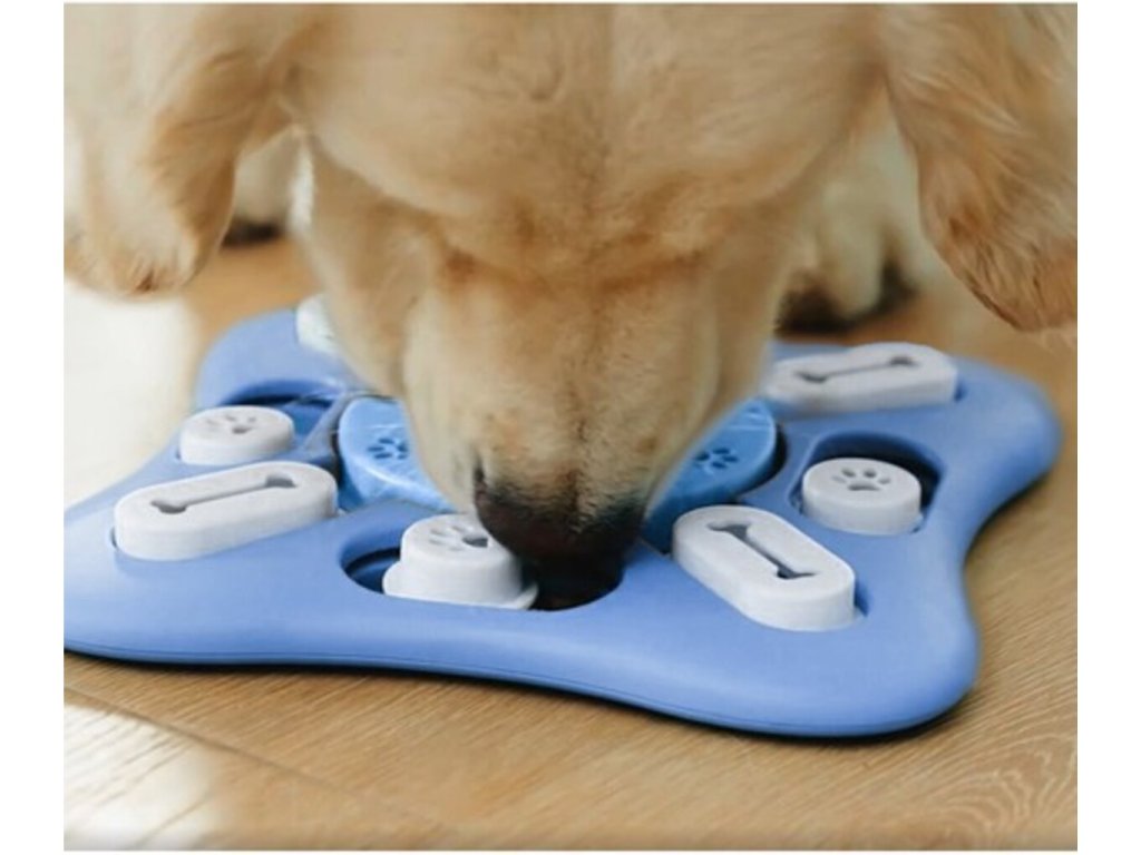 Interaktívna hračka pre psa je skvelým pomocníkom na zabavenie vášho štvornohého kamaráta. Vďaka tejto hre bude váš štvornohý priateľ rozvíjať svoje zmysly pre hľadačov a dobyvateľa! Okrem toho táto hádanka formuje proces zamerania a presnosti u zvieraťa, pomáha bojovať s nudou a tiež poskytuje pozitívne emócie . Ale najdôležitejšie je, že mu to prináša veľa radosti a bezstarostnej zábavy ! Je špeciálne navrhnutá tak, aby mal pes čas sa hrať. Veľké množstvo priehradok prinúti psa objaviť desiaty v každej priehradke. Prostredné puzzle sa otáča o 360 stupňov a tlačidlo vydáva pekný zvuk. Výrobok je vhodný do umývačky. Všetky prvky sú vyrobené tak, aby ich bolo možné dôkladne umyť aj v umývačke. Výrobok má zákutia, ktoré najlepšie umýva umývačka. Pokiaľ váš maznáčik prakticky hltá každé jedlo, môže byť veľmi nápomocná podložka na kŕmenie. Vďaka drážkam musí zviera trochu pracovať, než maškrty dostane von . Toto riešenie napomáha pomalej konzumácii potravy, a tým môže prispieť k správnemu tráveniu.
