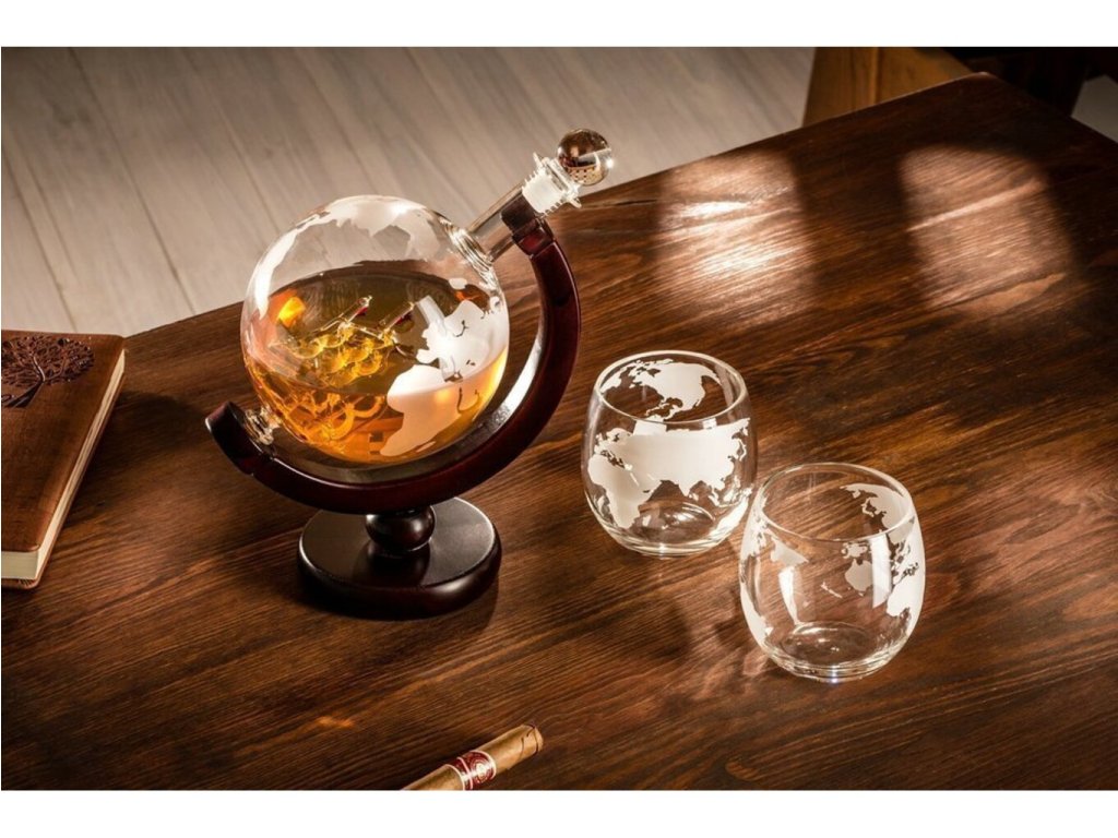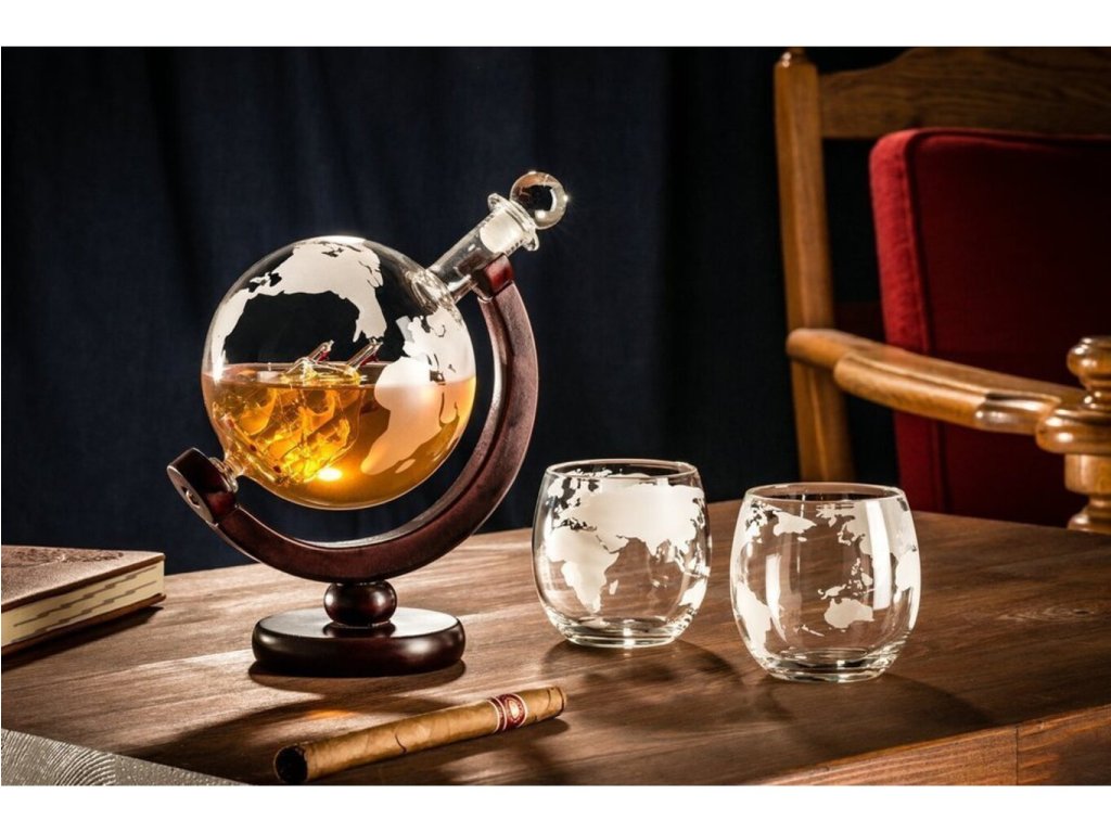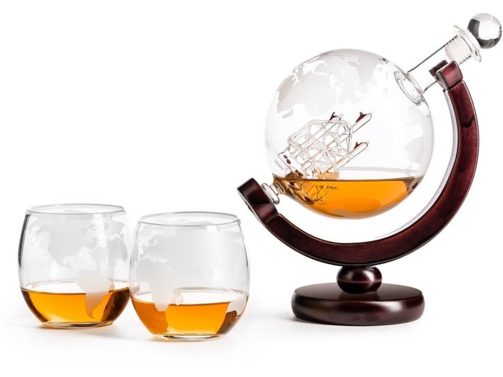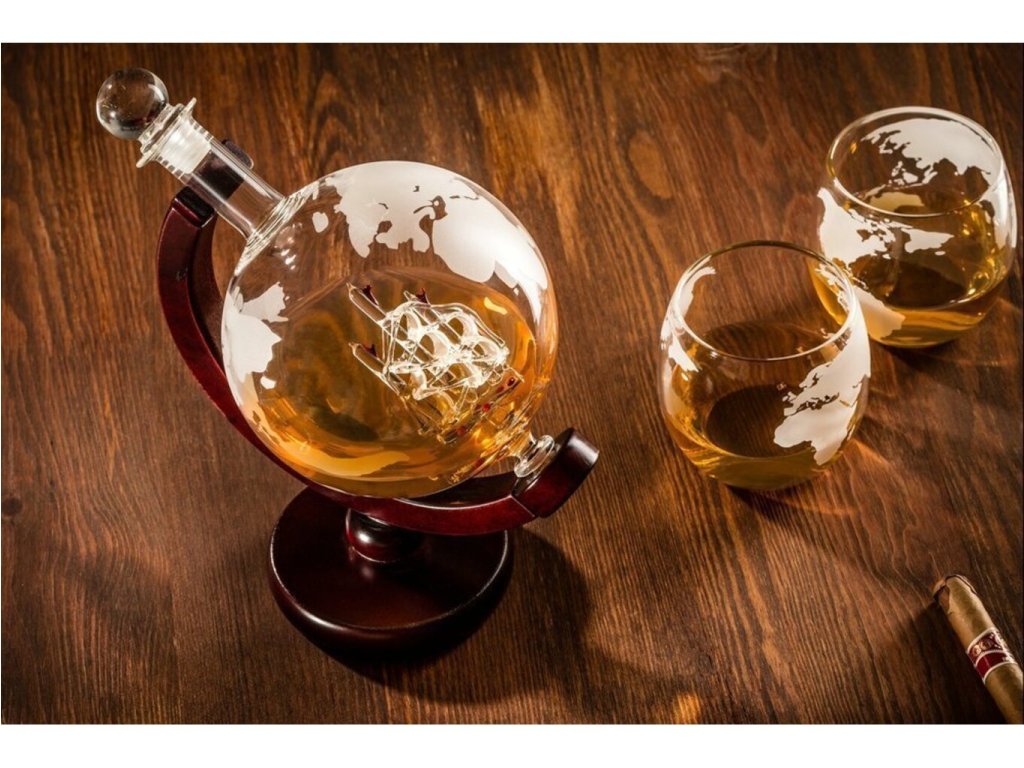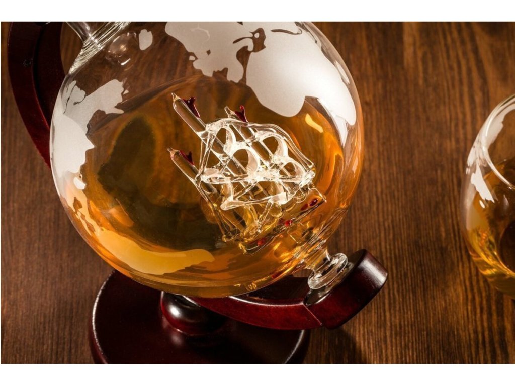 Každý vie, že dobrá whisky sa nedá piť len tak z akéhokoľvek pohára . Preto existuje tento vynikajúci darčekový set Karafa Globus pre všetkých milovníkov dobrej zlatistej whisky alebo bourbonu. Možno nebudete môcť vypiť celé more alkoholu, ale tak prepracovaná, ručne vyrobená a rytá karafa glóbus bude ozdobou každej domácnosti Takže ahoj a choďte na plavbu, pamätajte však, že na mori to niekedy môže veľmi hojdať a nemusí to byť morská choroba;) Jej tvar umožňuje lepšie prevzdušnenie a preto si môžete vychutnať arómu vášho obľúbeného pitia tak, ako ho jej výrobca pôvodne zamýšľal. Štýlová rytá karafa glóbus s plachetnicou vo vnútri.