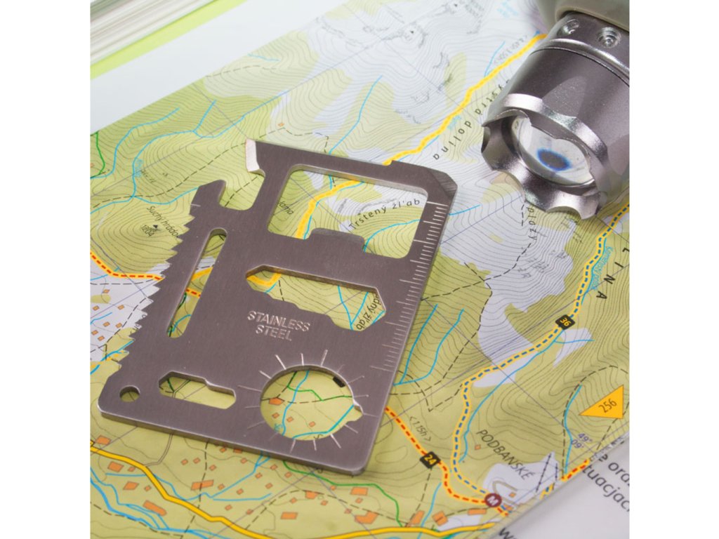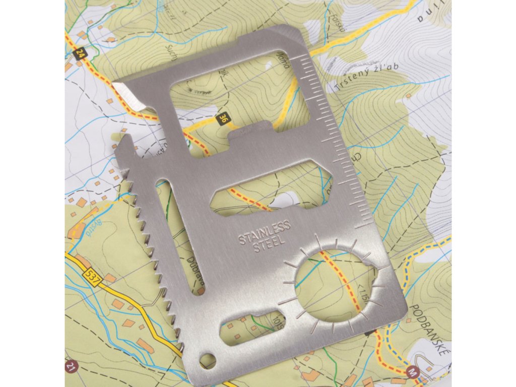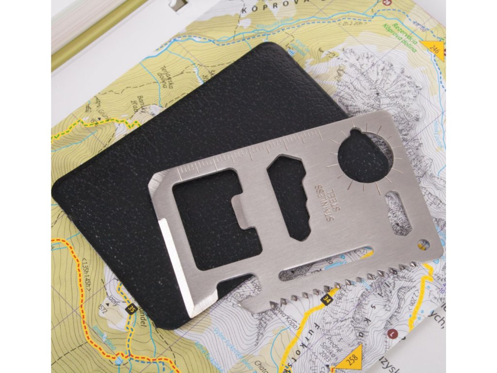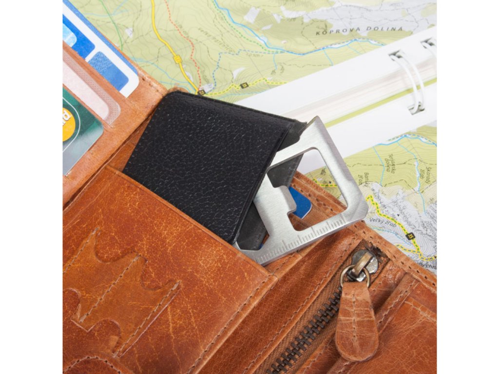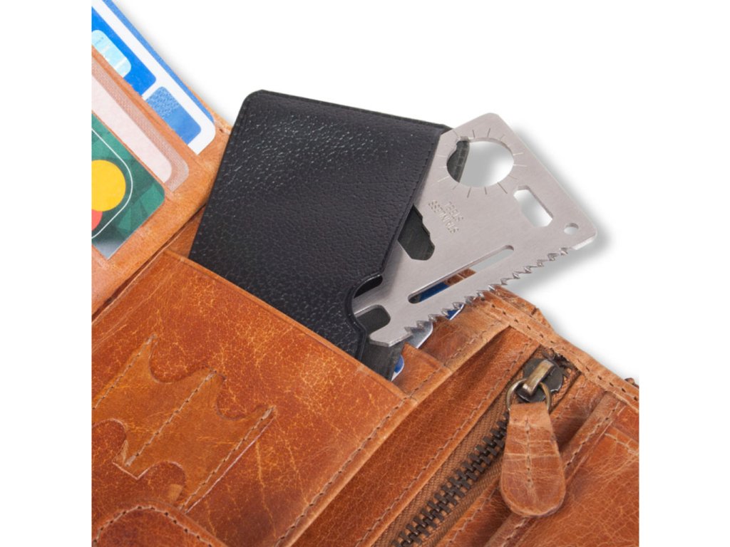 Ak budete mať nehodu a pôjde vám opravu o život, pravdepodobne by vám peniaze uprostred pustiny boli na nič. Aj napriek tomu môžete v peňaženke nájsť niečo, čo by sa Vám hodiť mohlo, a to kartu prežitia obsahujúcu množstvo užitočných nástrojov, ktoré zvýšia Vaše šance na šťastný koniec celého incidentu. Originálny darček pre dobrodruhov .