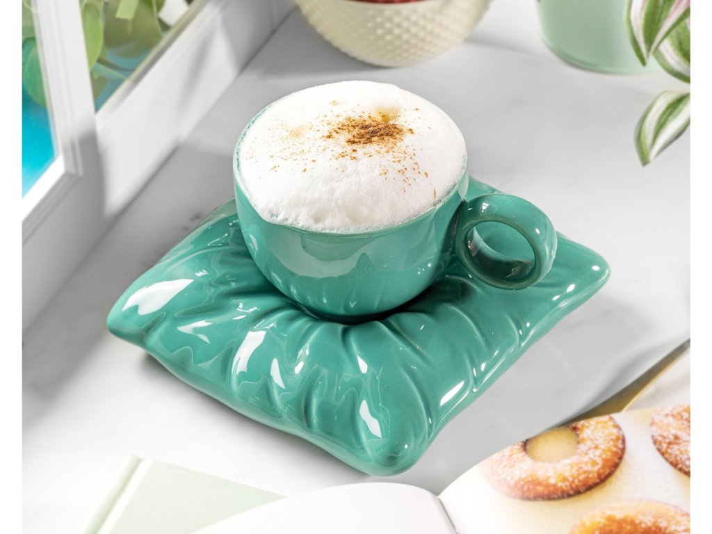 Cíťte sa naozaj kráľovsky pri pití z našej mimoriadnej šálky s vankúšikom namiesto podšálky. Zavrite na chvíľu oči, oddýchnite si a predstavte si, že sa k vám distingovaným krokom blíži pohľadný komorník v dokonale vyžehlenom fraku as nesmelým úsmevom pokýva hlavou a podáva vám vašu obľúbenú kávu alebo čaj, ktorého vôňa vás jemne zahalí. Naozaj metafyzický zážitok...