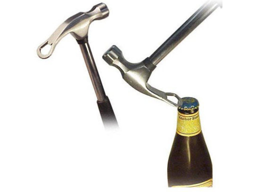 Či už ste tesár , klampiar alebo iný profesionál manuálnych prác , určite často pracujete s kladivom. Preto by sa Vám mohlo hodiť práve toto kladivo, ktoré predstavuje aj praktický otvárač na pivko . S týmto pracovnou pomôckou sa budete tešiť na každú poludňajšiu pauzu! Originálny darček pre kolegu. Neoceniteľný pomocník v prípade smädu a originálny darček pre vášho domáceho majstra.