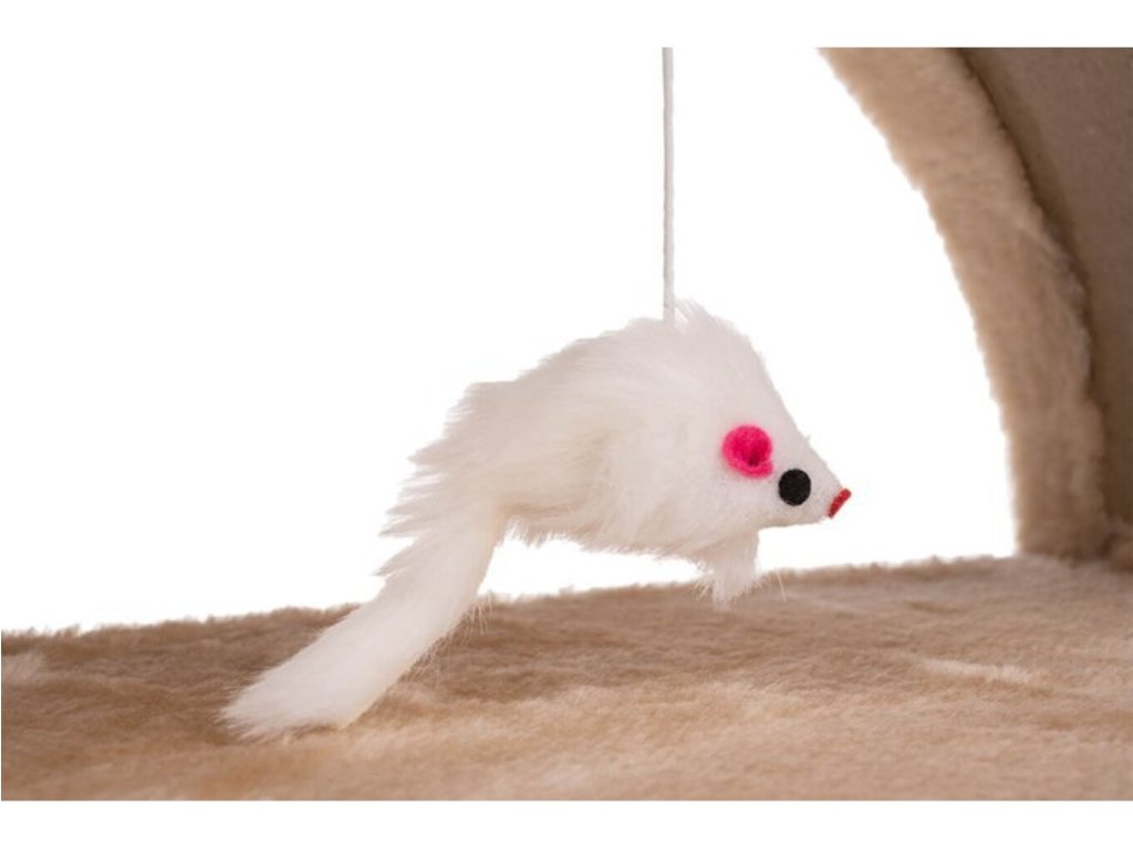 - Hračky mačky - na strome je našuchorená myš na gumičke, ktorá stimuluje zvedavosť mačky a nabáda mačku k hre alebo lovu.