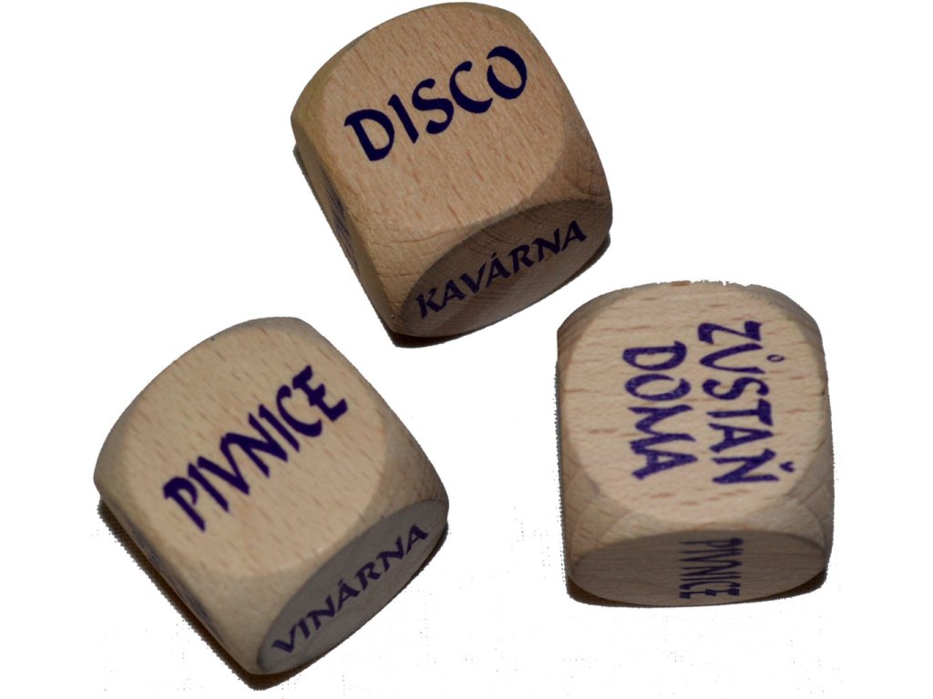 - Kocka (30 mm) na ktorej sú tieto nápisy: