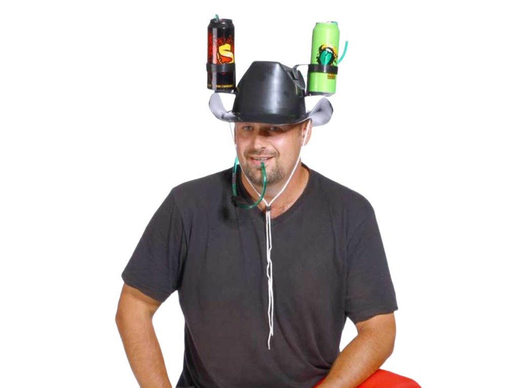 Milujete pivko, ale potrebujete mať voľné ruky pri jeho pití? Tento problém je jednoducho vyriešený pomocou tohto kovbojského klobúka. Kovbojský klobúk na dve plechovky má šikovne navrhnuté držiaky, do ktorých pohodlne vložíte Vami milovaný mok. S týmto kovbojským klobúkom môžete pohodlne pracovať alebo praktizovať inú činnosť, pri ktorej potrebujete mať voľné ruky , a pokojne pri tom popíjať. Skvelá vychytávka napríklad pri rybárčení, slúži ako pokrývka hlavy a ešte máte obe volené ruky na prúty. Originálny darček pre pivára alebo rybárov.