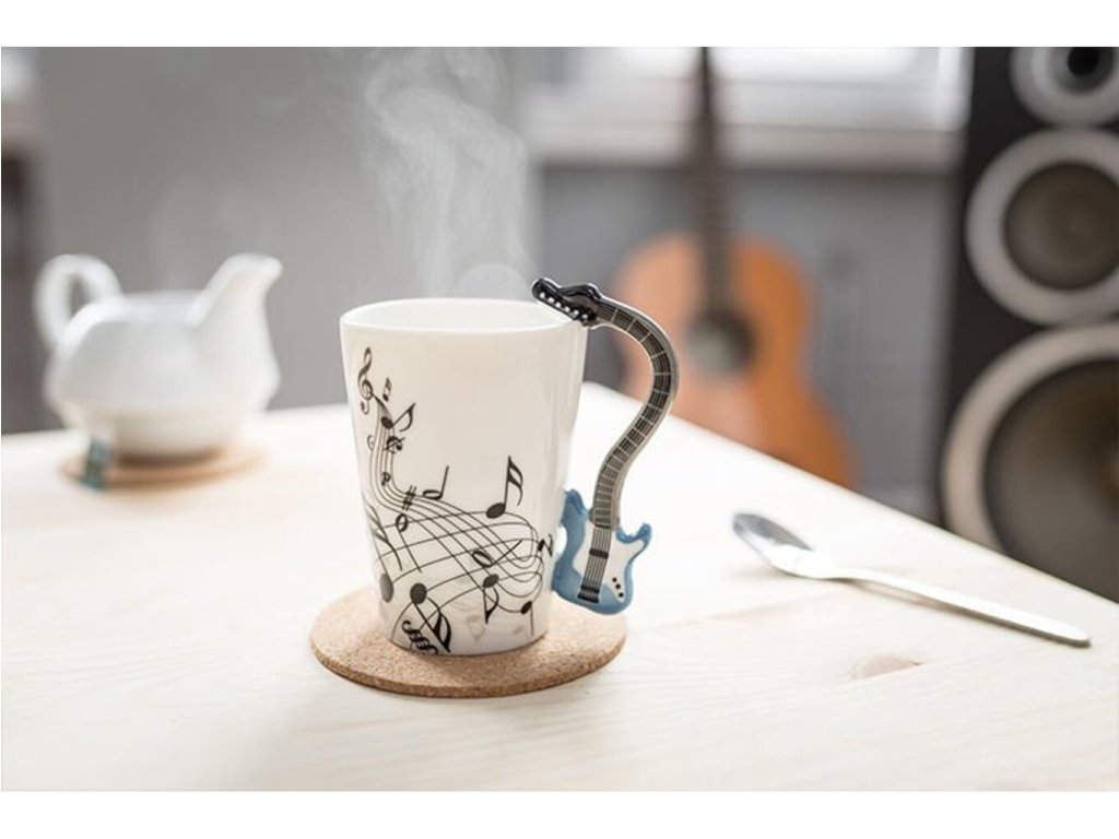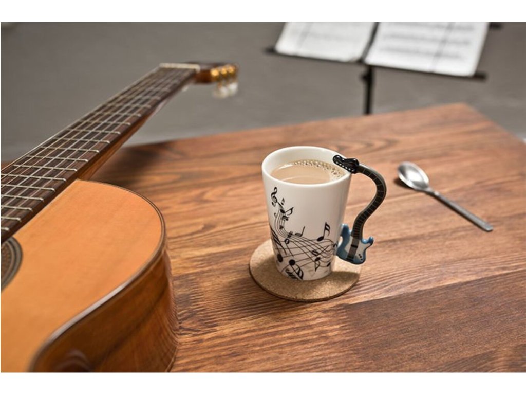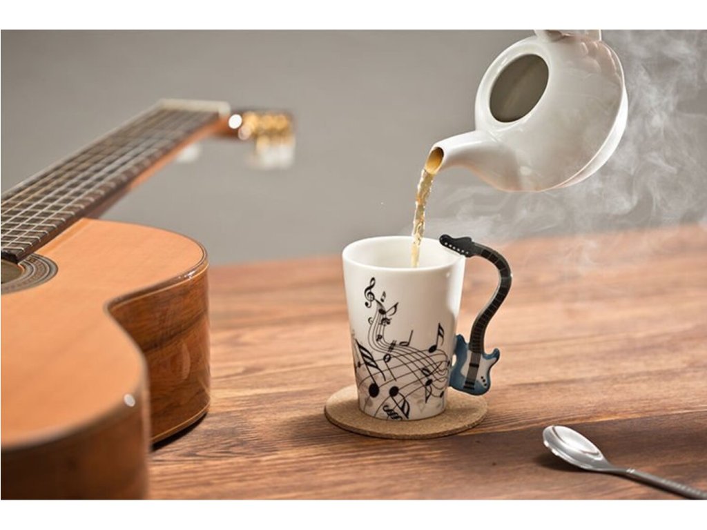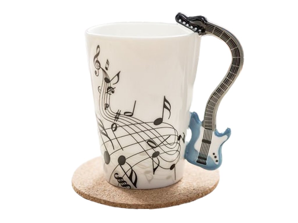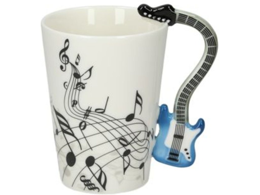 Máte niekoho známeho, kto rád hrá na gitaru ? Potom mu darujte k narodeninám tento štýlový gitarový hrnček , z ktorého sa každému gitaristovi bude dobre piť. Hrnček je potlačený notami a jeho uško má tvar gitary . Tento nevšedný hrnček sa bude vo Vašej kuchyni krásne vynímať a čaj alebo káva z neho bude chutiť ako nikdy. Vychutnajte si symfonickú chuť pitia z gitarového hrnčeka . Gitarový hrnček je originálny darček pre gitaristov .