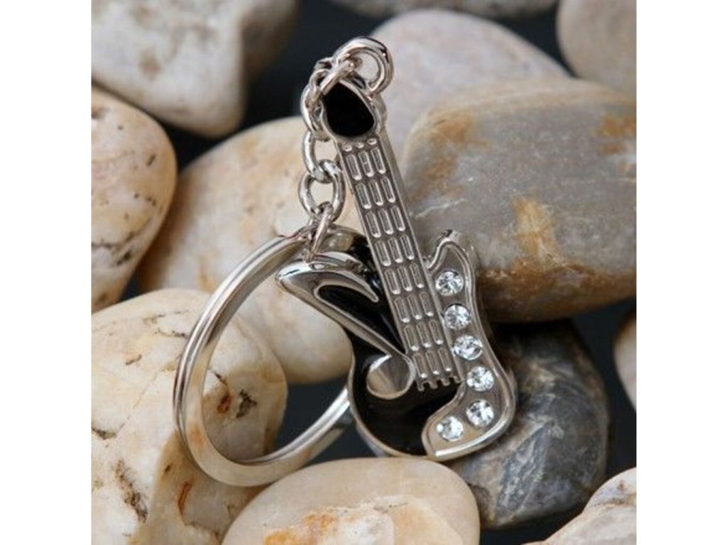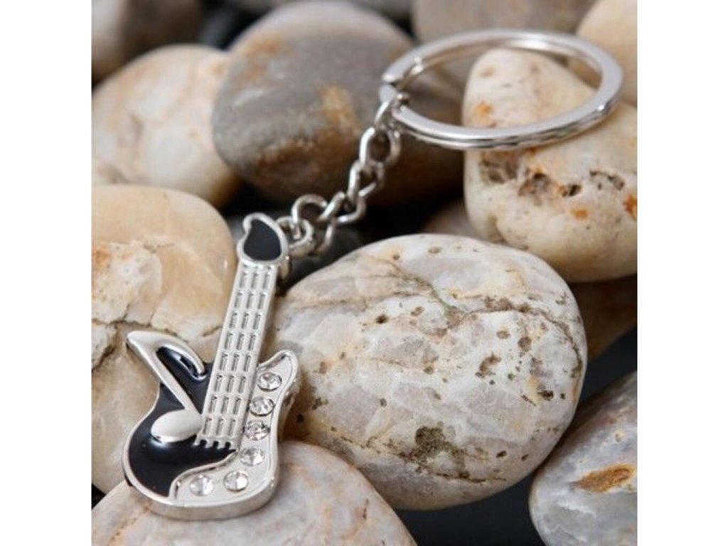 Vďaka tomuto štýlovému prívesku v tvare gitary , si svoje kľúče zaručene vždy spoznáte. Skrášlite zväzok svojich kľúčov týmto originálnym gitarovým príveskom . Máte v rodine gitaristu , či iného muzikanta ? Darujte mu k sviatku tento krásny gitarový prívesok , ktorý sa bude krásne vynímať na každých kľúčoch alebo batohu. Gitarový prívesok je originálny darček pre gitaristov a iných muzikantov .
