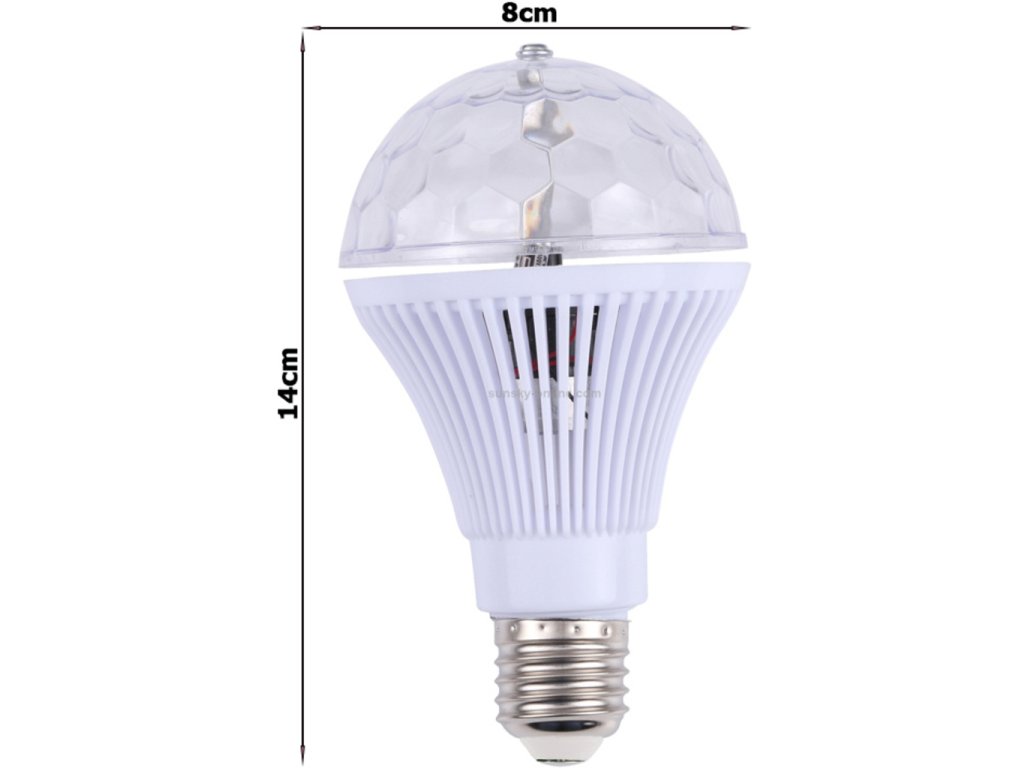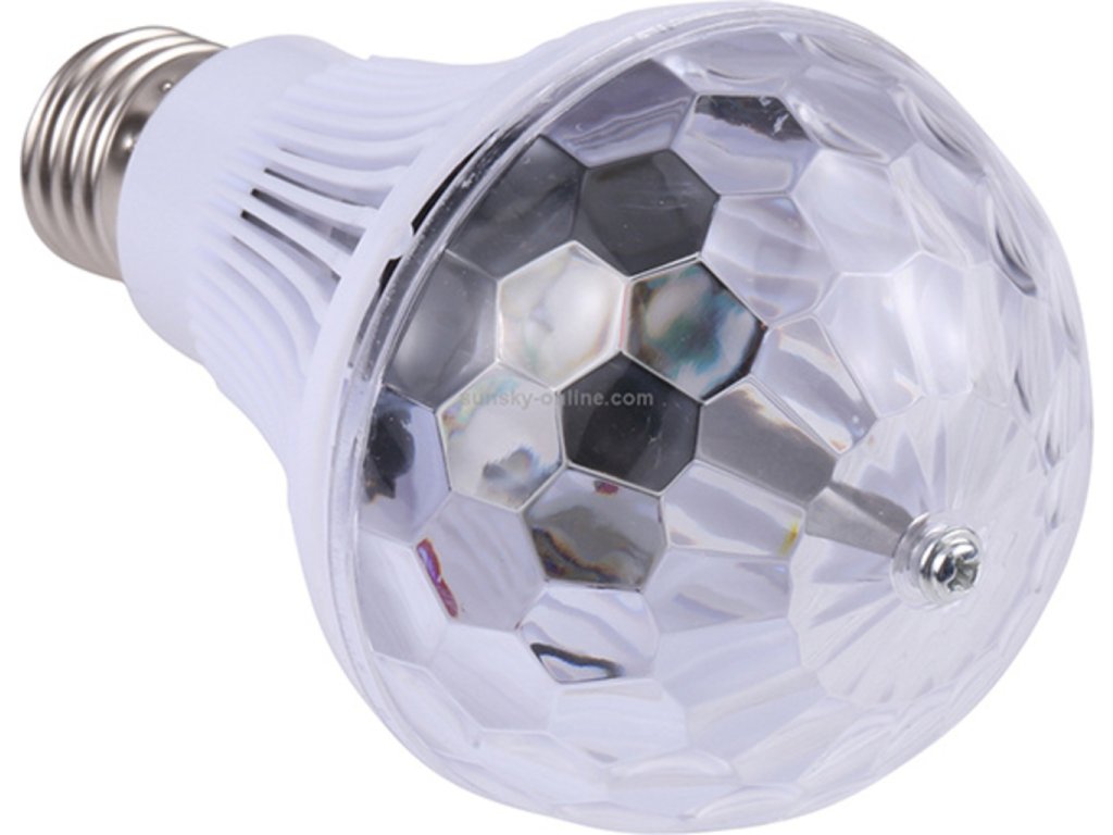 Organizujete párty a chcete, aby bola naozaj originálna ? Potom Vám nesmie chýbať táto skvelá LED Disko žiarovka E27 3W RGB. Jednoducho zaskrutkujete do objímky namiesto žiarovky o 220V . Rotačná žiarovka potom navodí tú správnu disco atmosféru v pestrých farbách svetiel. Prekvapte svojich priateľov a ukážte, akú viete usporiadať disco párty . Disco LED žiarovka je originálny darček na párty . Je vyrobená z pevného plastu, vo vnútri puzdra je motor, ktorý pohybuje pologuľou s hranolmi, čo dáva skvelý efekt.