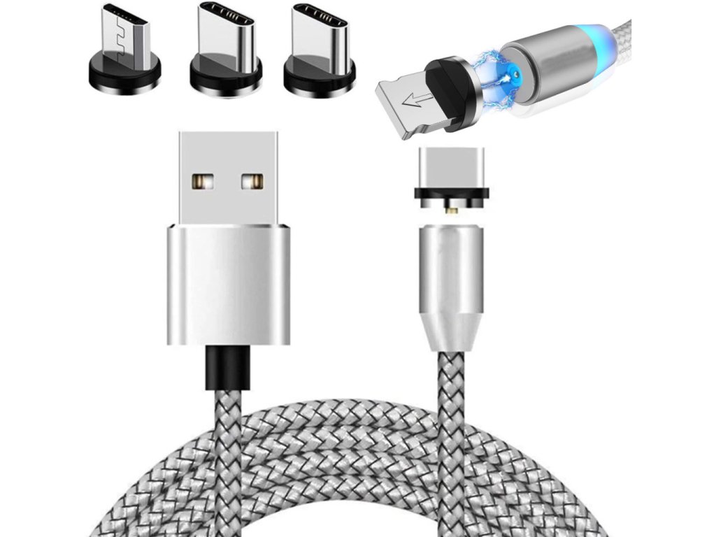 Magnetický USB nabíjací kábel 3v1 LED