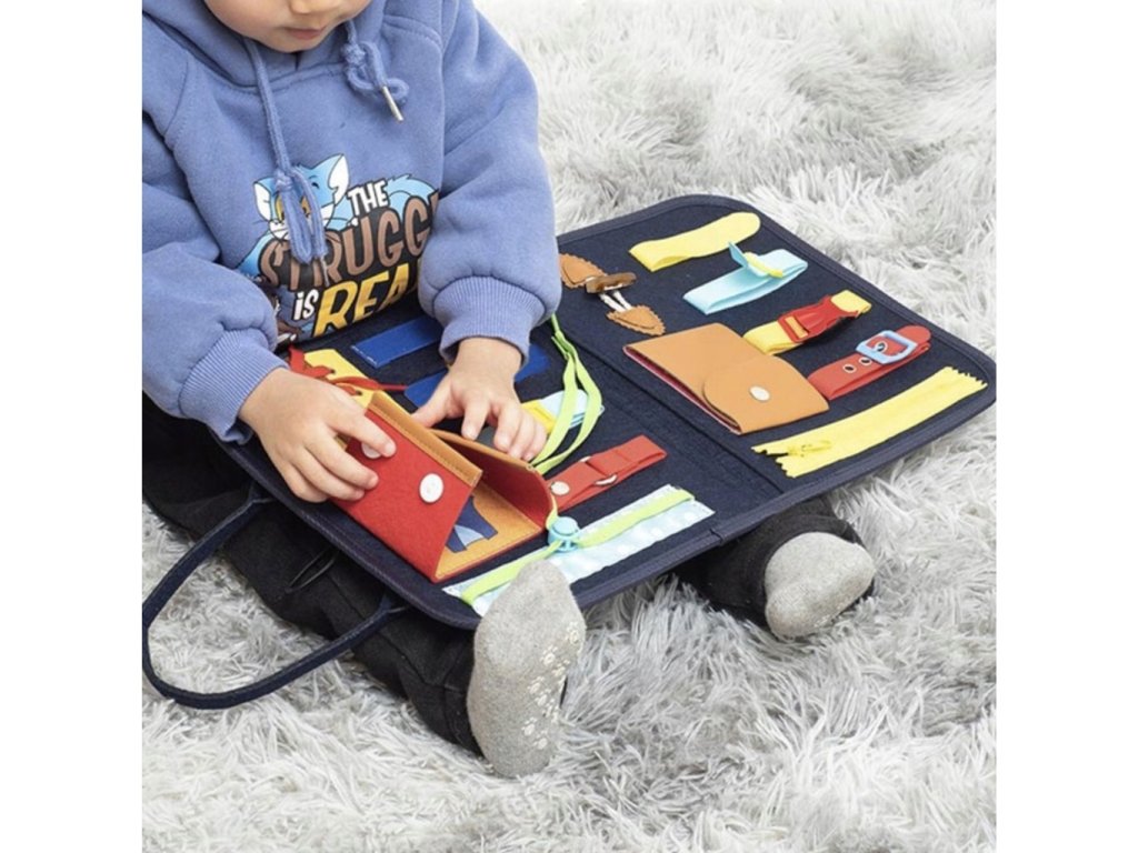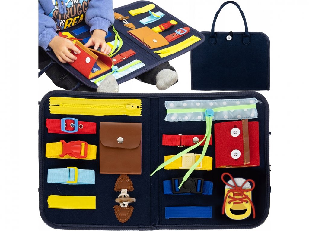 Vitajte vo svete manipulačnej dosky! Tento jedinečný hračká obsahuje množstvo príležitostí pre rozvoj detí. Svojou jednoduchosťou a nadčasovosťou sa stane nenahraditeľným spoločníkom vášho dieťaťa. Manipulačná doska vo forme taštičky je ideálna nielen pre domácu hru, ale aj pre výlety do parku, škôlky alebo jasličiek. Obsahuje 14 rôznych manipulačných prvkov, ako sú zips, spona, gumka alebo šnúrky, ktoré podporujú rozvoj psychomotorických schopností detí. Vďaka filcovému materiálu je doska ľahká a bezpečná pre deti. Každý herný okamžik je novou príležitosťou objaviť niečo nové a posunúť sa vo svojom osobnom rozvoji. Neponechajte svoje dieťa pozadu a dajte mu možnosť rozvíjať svoje schopnosti s manipulačnou doskou vo forme taštičky. Vaše dieťa si zamiluje hranie s ňou a vy budete mať istotu, že sa učí a rozvíja každý deň!