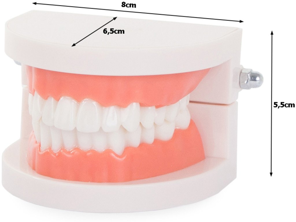 Zubný model je skvelým nástrojom na demonštrácie správnej ústnej hygieny. Je ideálny pre vyučovanie v triede, laboratóriu alebo zubnej ordinácii, najmä pred malými deťmi, ktoré sa len učia správne čistiť zuby. Tento model poskytuje skvelú vizuálnu podporu pre výuku a pomáha deťom lepšie porozumieť procesu čistenia zubov. Jeho realistický design a detailné vyhotovenie zubov a dásní ho robia skvelým pomocníkom pri výučbe a motivuje ich k správnej ústnej starostlivosti. S týmto zubným modelom budete mať možnosť ukázať, ako správne používať Kečkušku, nite do zubov a ďalšie pomôcky pre ústnu hygienu. Investujte do vzdelania a starostlivosti o zuby vašich detí pomocou tohto užitočného nástroja.