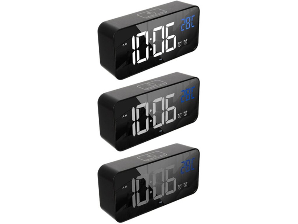 Multifunkčné zrkadlové hodiny s budíkom a teplomerom čierne