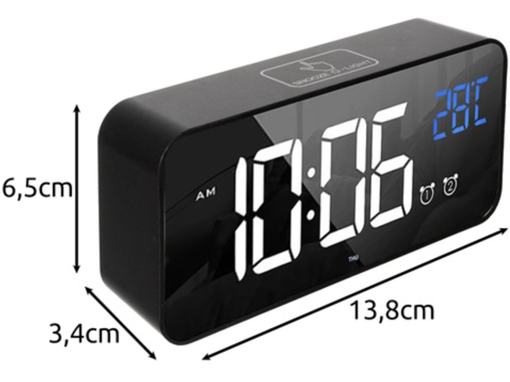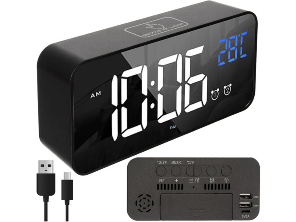 Objavte revolúciu vo svete času s našimi multifunkčnými zrkadlovými hodinami! Tento elegantný čierny kúsok sa stane nielen praktickým doplnkom vášho domova, ale aj štýlovým akcentom, ktorý upúta pozornosť. Veľká a jasná LED obrazovka s nastaviteľným jasom zaručuje perfektnú čitateľnosť vo dne aj v noci, či už ste ranné vtáča alebo nočná sova. Užívajte si pokojné prebudenie s možnosťou odloženia Snooze a vyberte si z 25 jedinečných melódií alarmu tú, ktorá vás naladí na nový deň. Či už potrebujete jemné prebudenie pre ľahký spánok alebo vás ťažko preberie razantnejší tón, naše hodiny sa prispôsobia vašim potrebám. S funkciou automatického osvetlenia na zvukový signál ušetríte energiu a vďaka dvojitému napájaniu - batériovému a cez USB Type-C - si doprajete slobodu umiestnenia. Pridajte do svojej domácnosti nielen hodiny, ale skutočného digitálneho asistenta, ktorý vám poskytne všetky kľúčové informácie na jednom mieste. Nečakajte a objednajte si ich ešte dnes!