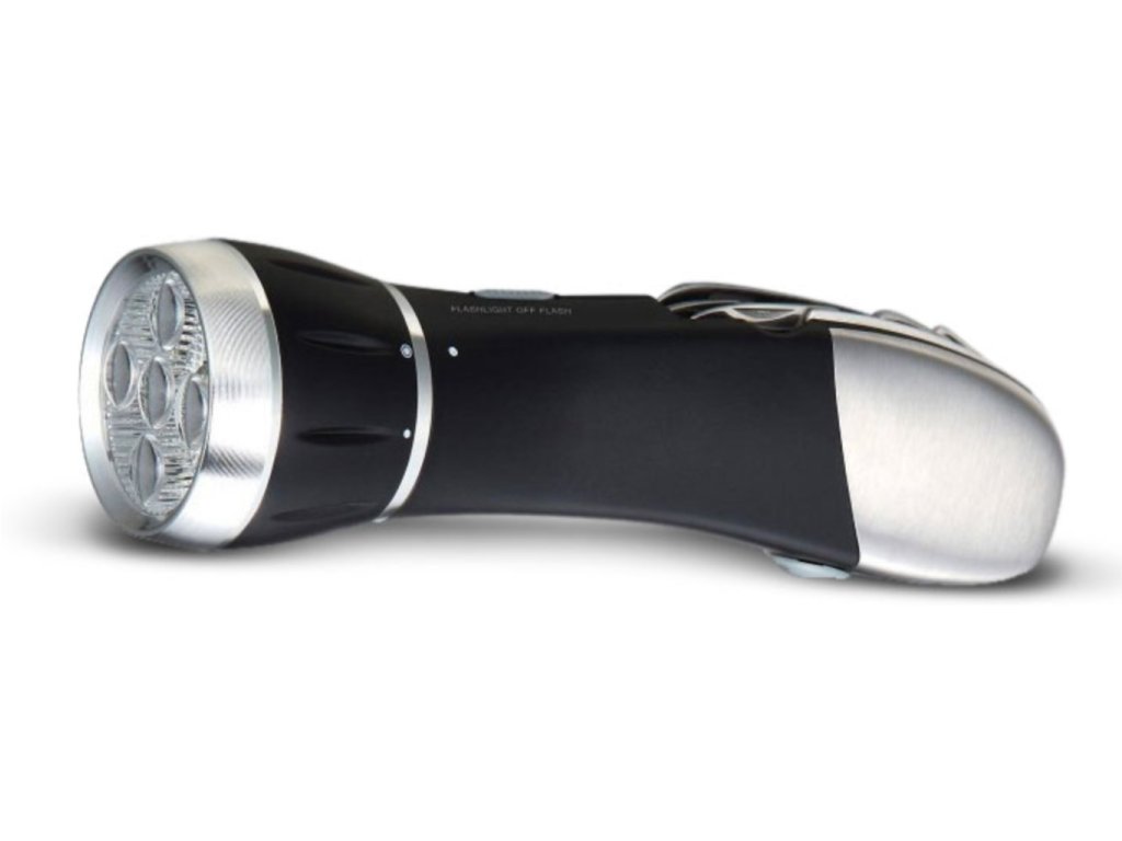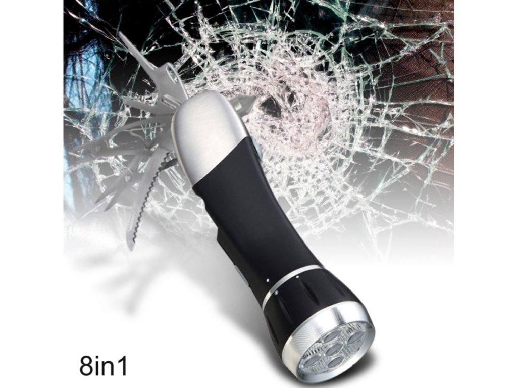 - Svietidlo obsahuje : 4 LED svetlo, blikajúce červené svetlo, kladivko na rozbitie skla, nerezové kliešte, nožnice, krížový skrutkovač, plochý skrutkovač, pilník