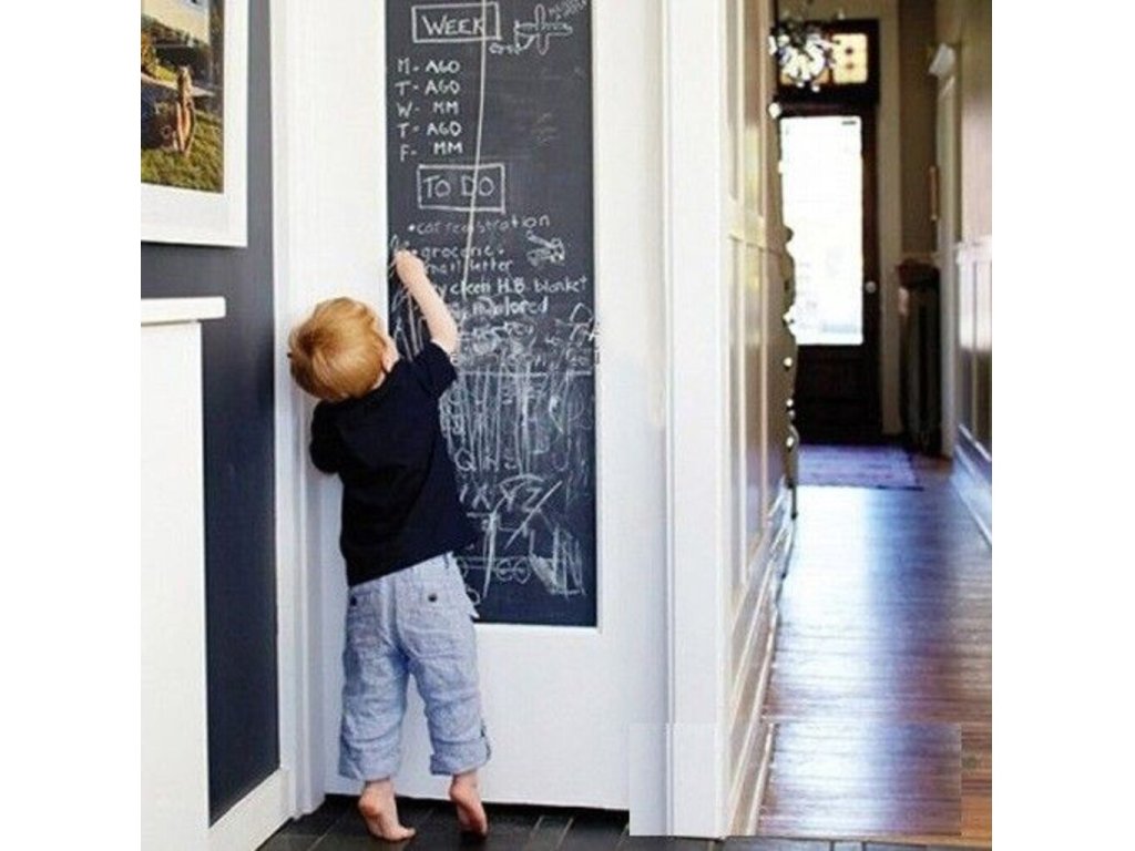 Táto praktická nalepovacia tabuľa je skvelým darčekom pre deti na maľovanie, alebo keď si s nimi chcete dať doma lekcie zo školy. Samolepiaca školská tabuľa je tiež báječná pomôcka do reštaurácií na písanie jedálneho menu, alebo do barov . Samolepiaca školská tabuľa sa ľahko nalepí a ľahko sa dá odňať zo steny, dobre sa omýva a nezanecháva na stene žiadne stopy po lepidle. Tabuľu možno tiež ľahko rozstrihať nožnicami, pokiaľ by ste si priali urobiť tabúľ viac. Samolepiaca školská tabuľa je originálny darček do domácností i reštaurácií .