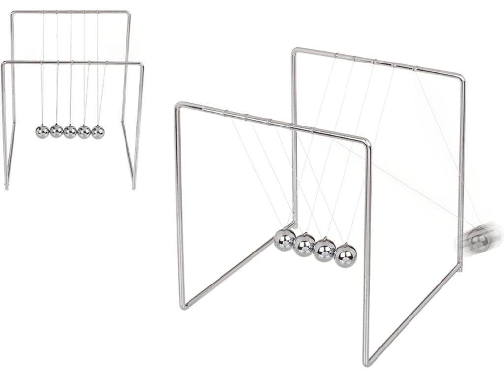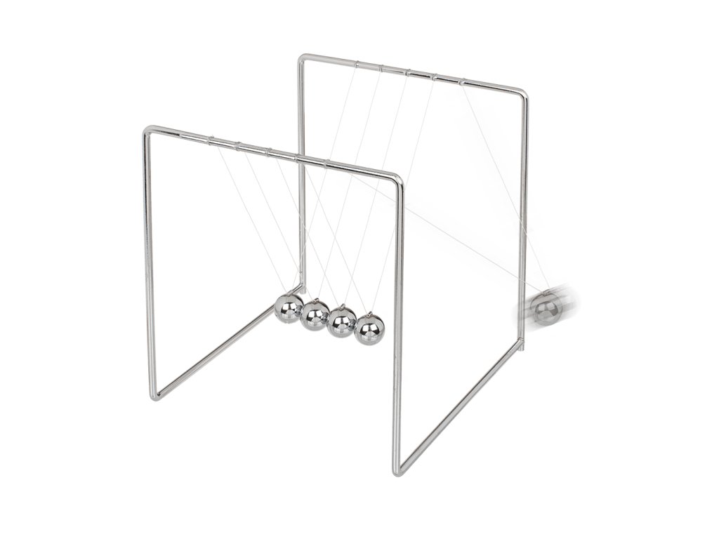 Ste prepracovaní a často pracujete dlho do noci? Zaobstarajte si na stôl upokojujúcu Newtonovu hojdačku ! Jedná sa o guličky z nerezovej ocele zavesené na tenkých drôtikoch. Od prvotného kmitnutia sa vďaka princípu odovzdávania kinetickej energie guličky od seba navzájom odrážajú a kmitať vydržia naozaj veľmi dlho. Štýlový darček do každej pracovne .