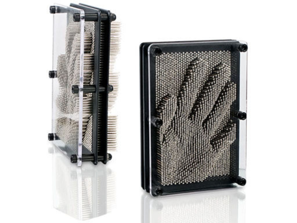 Kto by nechcel mať na svojom stole fotku svojej rodiny či lásky? Avšak prečo si ho nevylepšiť niečím netradičným, napríklad odtlačkom ruky Vášho dieťaťa či tváre Vašej manželky? Stačí zozadu do rámčeka vytlačiť čo budete chcieť a vytlačený štruktúra vytvorí obrazec, ktorý sa objaví na prednej strane gadgetu. Originálny darček do kancelárie či pracovne .