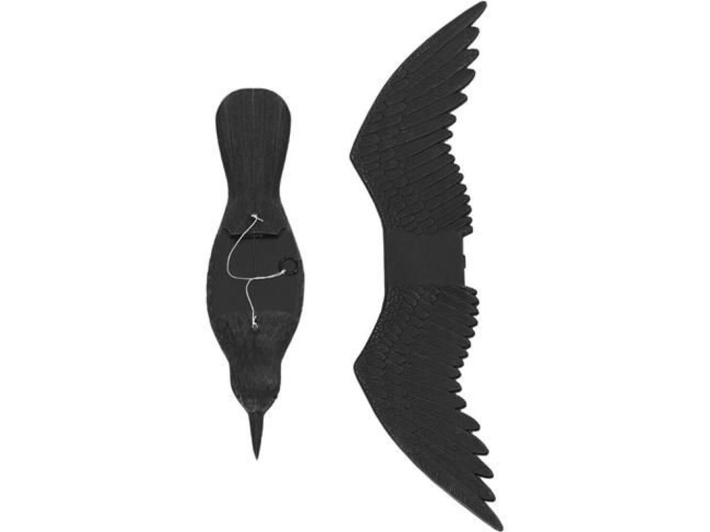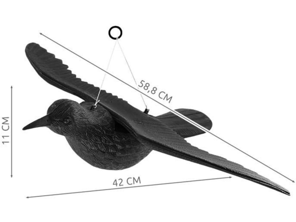 - REALISTICKÝ VZHĽAD - presná reprodukcia anatomických detailov vtáka, ako je usporiadanie krídiel, peria a tvaru a veľkosti zobáka, rovnako ako intenzívna farba, robí figúrku úspešnou imitáciou skutočného havrana, a tak zvyšujú šance na účinné odrádzanie ostatných vtákov.