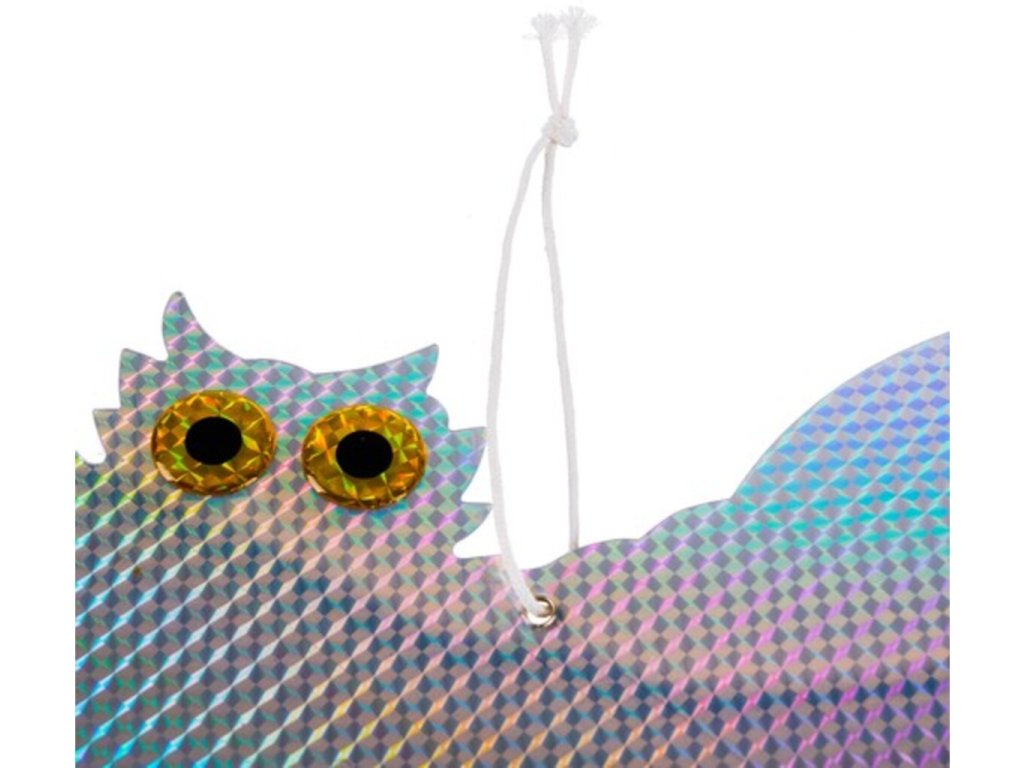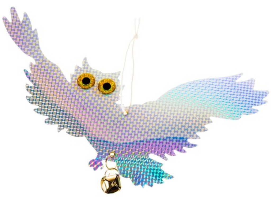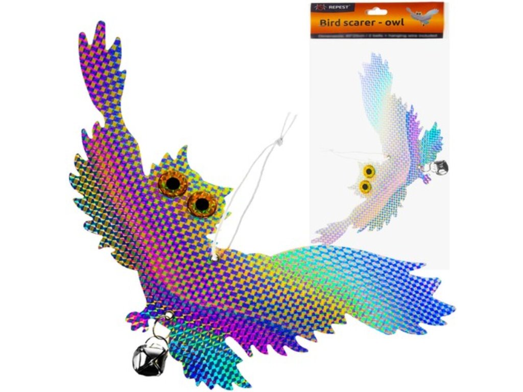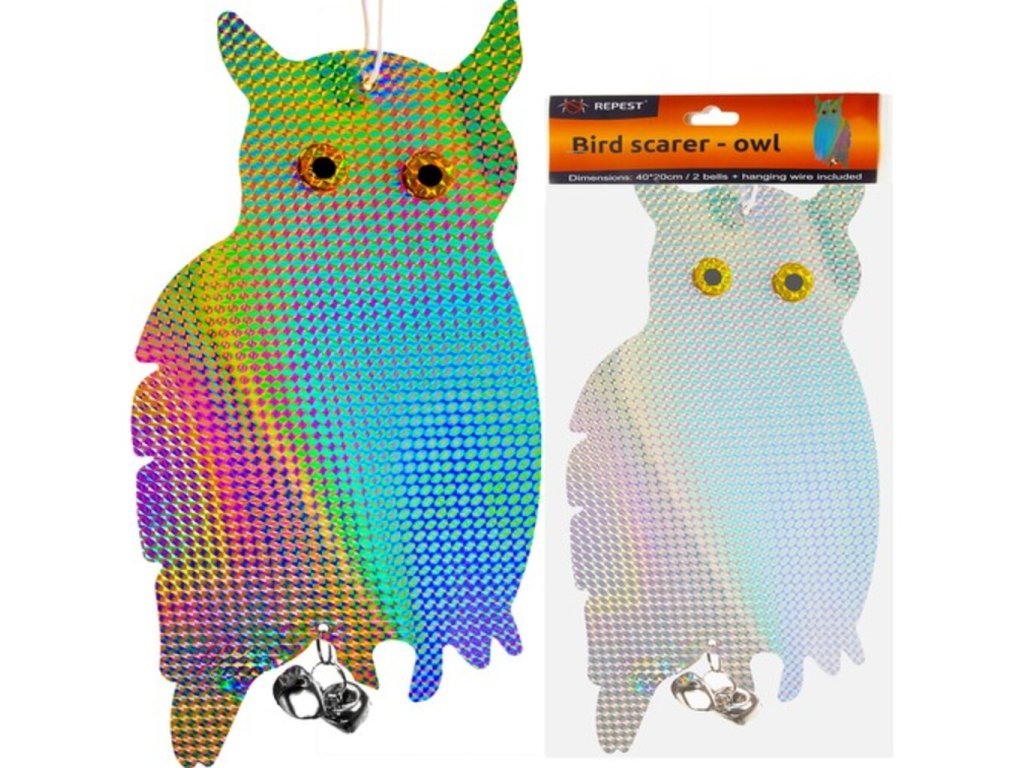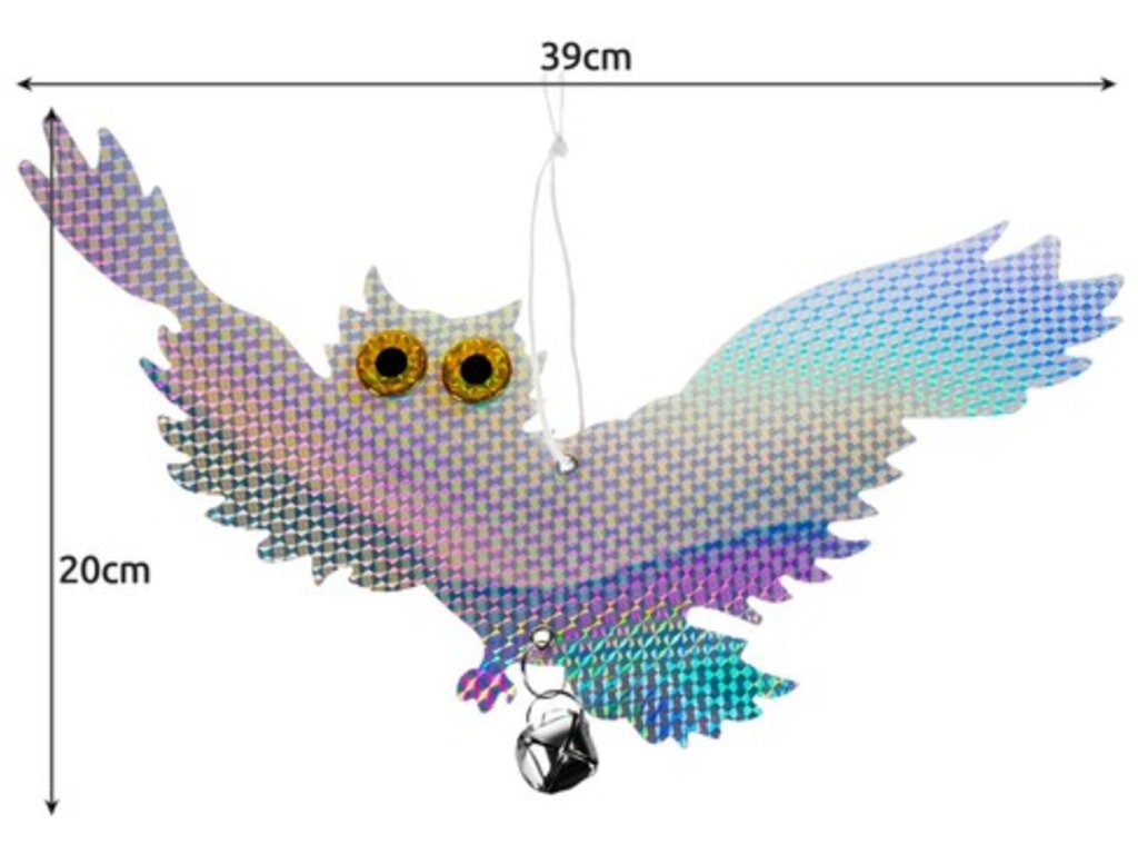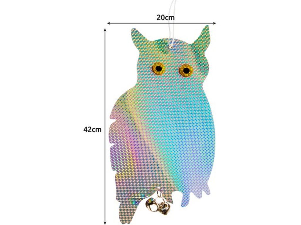 Trápi Vás nevítaní vtáci na Vašej záhrade , ktorí Vám vysporiadajú všetku úrodu? Neviete si už rady a chcete pred nimi svoju úrodu brániť? Vaše starosti vyrieši tento odpudzovač holubov a vtákov sova . H olografický povlak vytvára dojem trojrozmernosti . Ako by sova bola skutočná. Tento efekt je dosiahnutý použitím špeciálnych fólií a povlakov, ktoré odrážajú svetlo rôznymi spôsobmi. Farby sú navrhnuté tak, aby odrádzali vytvorením vysoko reflexného svetla, ktoré odradí vtáky alebo iné zvieratá. Ďalšou výhodou je vodeodolný materiál. Účelom odpudzovača je chrániť plodiny, budovy, infraštruktúru a tiež bezpečnosť ľudí a vtákov samotných . Používajú sa v mnohých odvetviach ako je poľnohospodárstvo, chov dobytka, priemysel, letectvo a ďalšie. Odpudzovač sova je na povrázku, takže veje vo vetre. Aby sova odradila vtáky a odradila ich od príchodu na určité miesta, ovplyvňuje ich rôzne podnety prostredníctvom zvukov, pohybu, odrazu svetla a vzorovania . Poslúži aj ako záhradné dekorácie. holografická sova pre vtáky má 2 rolničky, ktoré pri pohybe vo vetre vydávajú zvuky. Pre vtáky to môže byť nepríjemný zvuk.