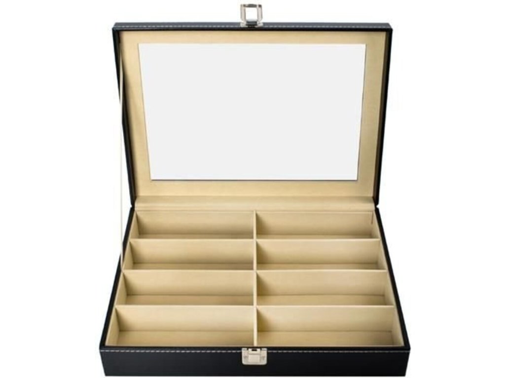 Patríte medzi vášnivých milovníkov okuliarov ? Máte ich doma veľa a radi by ste pre nich našli lepšie miesto, než ich povaľovať v šuplíku alebo skrinke? Tento elegantný Organizér na okuliare 8ks je ten pravý pomocník pre Vás. Vďaka akrylovému priehľadu na hornej časti sa dá ľahko vidieť dovnútra, a tak hneď viete, kam siahnuť. Vnútorný priestor je z mäkkého materiálu, ktorý zabráni zničeniu okuliarov. Šikovný a skladný organizér poskytuje priestor pre Vašu zbierku okuliarov , ktoré budú v bezpečí a nehrozí im žiadne poškodenie. Praktický organizér ocení každý, komu na svojej zbierke okuliarov záleží. Organizér na okuliare 8ks je originálny darček do domácnosti .
