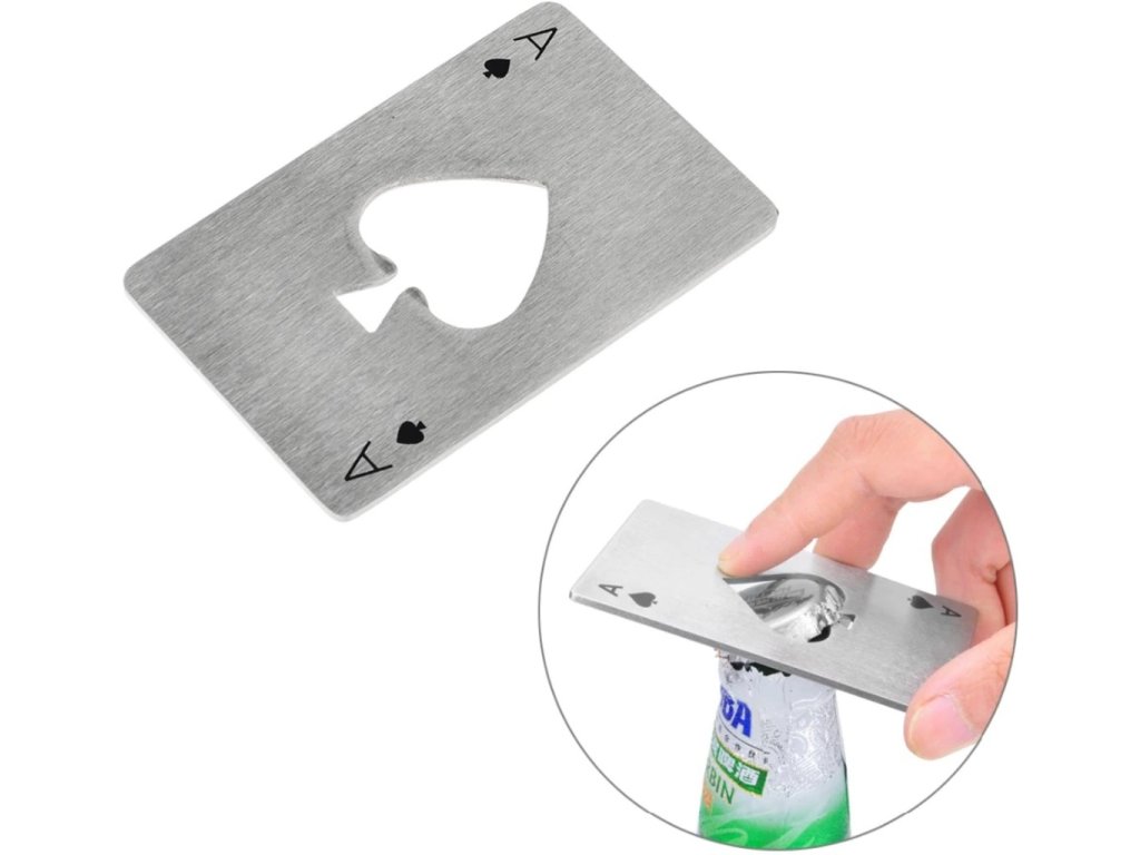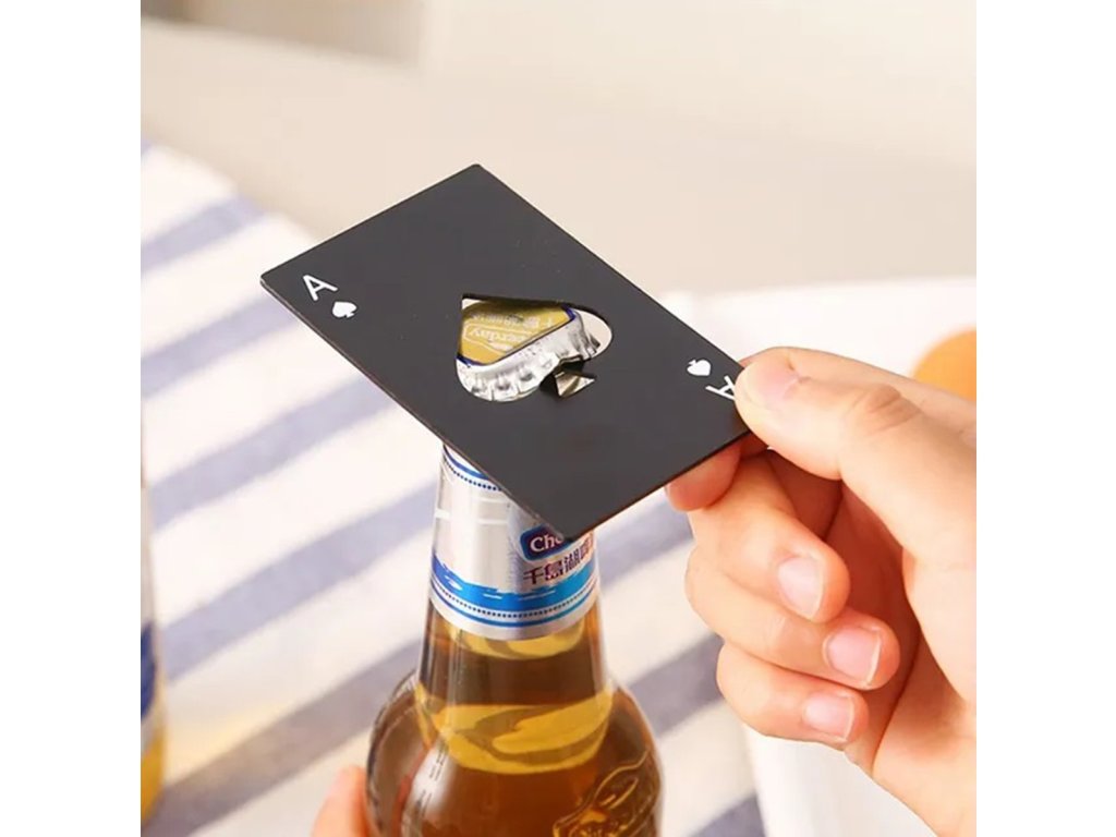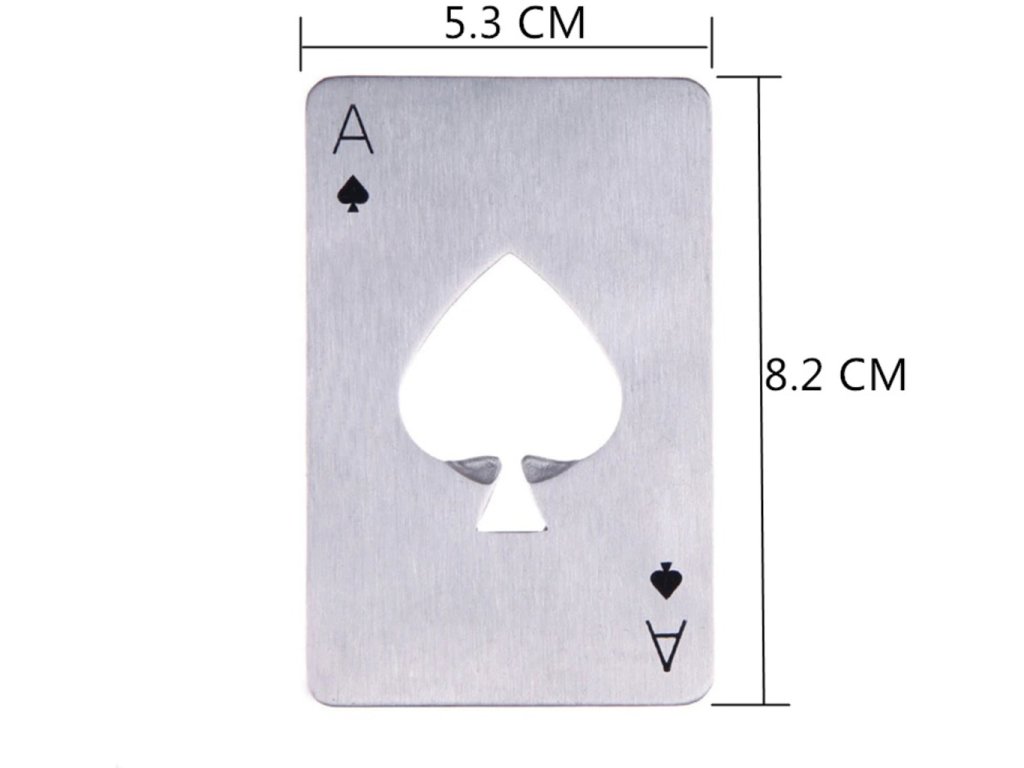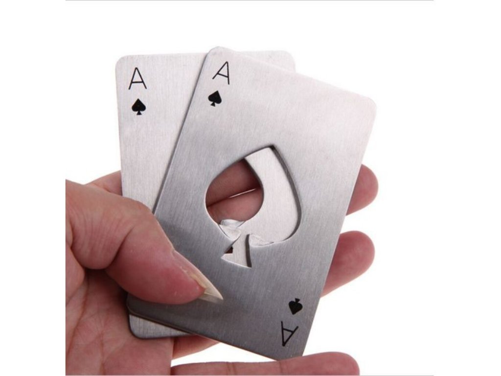Máte kamaráta , s ktorým si občas radi dáte partičku pokru ak tomu fľaša pivka ? Darujte mu k sviatku tento jedinečný otvárač na fľaše Pikovej eso . Ako užitočne sa dá využiť táto karta , ale nesnažte sa s ňou podvádzať v hre! Táto kovová karta totiž slúži ako otvárač na fľaše . Štýlový otvárač v tvare karty pikového esá je symbolickým darčekom pre každého karbaníka . Otvárač na fľaše Pikové eso je originálny darček pre milovníkov kartových hier a pivára .